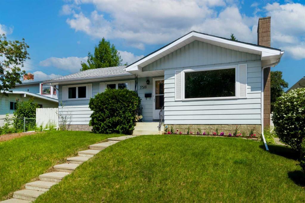 Opportunity knocks in the popular community of Varsity! Located on a quiet street across from a beautiful park, this 1-owner bungalow on a large 50’ x 110’ lot offers the ideal opportunity to move in, renovate and call your own. The floor plan is excellent! The welcoming foyer opens to a generous sized living room with beautiful brick fireplace and a huge window overlooking the park across the street. Hardwood floors beneath the carpet are eagerly waiting to be exposed throughout the main floor. The dining room with built-in display cabinet leads to a large eat-in kitchen with plenty of counterspace and updated cabinetry. Down the hall you will find 3 good size bedrooms, 2 of which share a 4-piece bathroom, while the primary bedroom has its own 2-piece ensuite! You will appreciate the triple pane windows throughout the main floor. The basement is fully developed with a retro style feel and includes another fireplace, built-in shelving and large recreation area. There is also a home office and a den (or 4th and 5th bedrooms - windows are not legal egress) and a 3rd bathroom. There is an additional storage room, while the laundry area is included in the utility room with new furnace (2022) and hot water tank (2023). The large private backyard is fully fenced and landscaped with a concrete block patio and single detached garage opening to a paved asphalt back lane. The garage will need a new roof. The location of this home is ideal, close to schools and nearby Market Mall shopping centre. Downtown Calgary is a quick commute away. For those who love to spend time outdoors, you are steps away from the Bow-River pathway system and the beautiful Bowmont Park. Do not miss out on this wonderful bungalow home in Varsity.