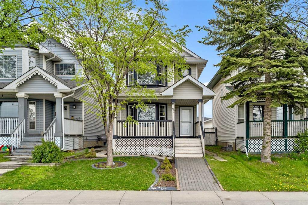Fantastic family home located near all amenities. Just a few minutes walk to Crossing Park School (K-9) and the Superstore. This well-maintained property features an UPDATED KITCHEN. The bright and open main floor includes a spacious living room, a beautiful kitchen, a half bathroom, and a dining area with ample space for the whole family. The front of the home faces west, offering beautiful sunsets and natural light. The upper level boasts two large bedrooms, each with its own walk-in closet. The laundry is conveniently located in one of the walk-in closets, equipped with a NEWER WASHER AND DRYER (LESS THAN A YEAR OLD). A large four-piece bathroom is centrally located between the two bedrooms. The FULLY DEVELOPED BASEMENT features a SEPARATE SIDE ENTRANCE. It includes two bedrooms with egress windows, a NEW 4 PCS WASHROOM, and a kitchenette with ceiling wiring for a stove. The rough-in for laundry is also present. UPGRADES include a HIGH-EFFICIENCY FURNACE, a NEW HOT WATER TANK (May 2024), NEW LVP FLOORING in the basement, and a NEW ROOF (July 2024). The backyard, accessible from the kitchen, features a LARGE DECK, a SHED, and a VEGETABLE GARDEN. This home offers MOUNTAIN AND DOWNTOWN VIEWS and is just a few minutes walk from schools, shopping, transit, and the Martindale C-Train station.