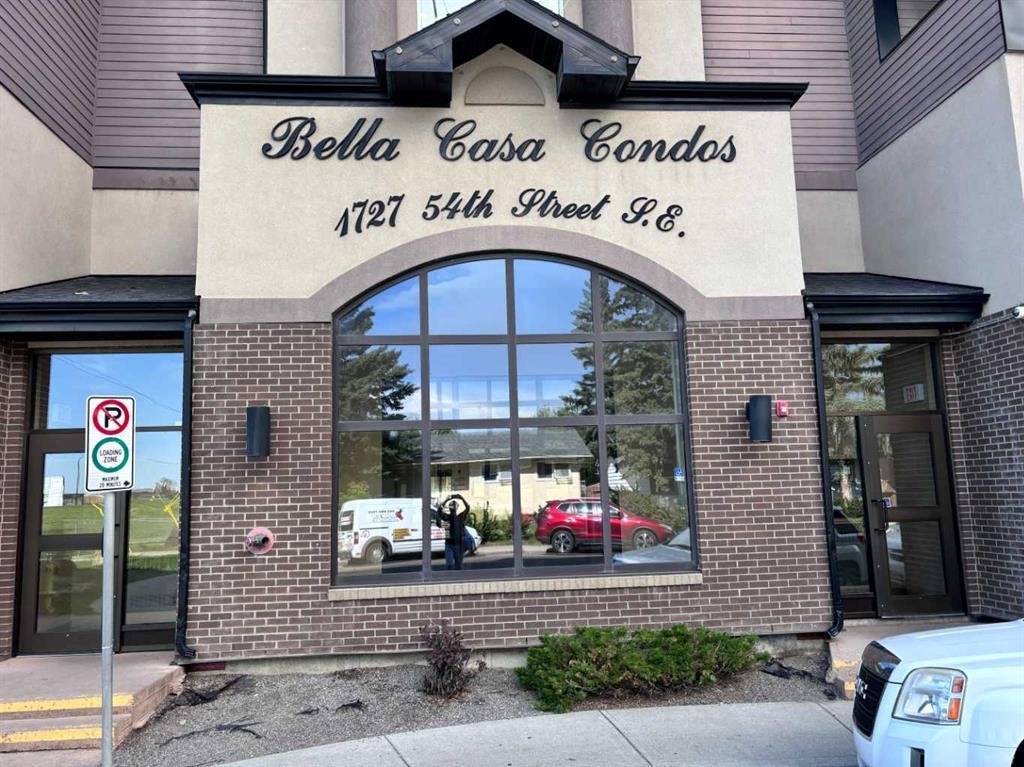 Exceptional value one-bed/one-bath condo unit comes with 9’ ceiling, white kitchen, new laminate flooring, in-suite laundry, an electric fireplace, and an underground parking stall in still one of the most affordable communities in Calgary. Conveniently located on the second level facing the courtyard. The main level of the condo complex is filled with commercial businesses, dental and walk-in clinics, and a pharmacy. As you enter the condo unit, you will immediately notice how airy and bright the unit is. The condo unit was recently upgraded with new laminate flooring which makes cleaning the unit a breeze. The bedroom is generous in size with his/her closet and a jack/jill door to the shared ensuite/main bathroom. The functional kitchen comes with white cabinets and a raised breakfast bar. The bright and airy living room is equipped with a corner electric fireplace to keep you warm and cozy in the Winter months. The unit completes with 9’ high ceilings, extra large windows, a full size stacked washer and dryer and a heated underground parking stall. With just steps to the newly constructed max BRT (Bus Rapid Transit) line with easy access to downtown; the Elliston Park where annual Global Fest is being held; and the International Avenue that is filled with mom and pop shops, restaurants, grocery stores, many commercials and family businesses, and schools, this condo has so much to offer. Act now and contact your realtor to book a viewing today. The condo complex is pet-friendly with board approval. No short term rental is permitted.