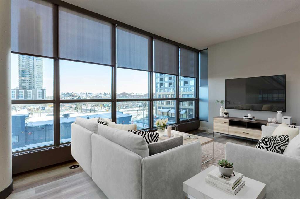 Trendy meets chic in this bright, well laid out 2 bedroom, 2 bathroom condo in the desirable KeyNote. Corner unit featuring 9' floor to ceiling windows, wide plank laminate flooring, spacious living and dining room with access to the balcony, kitchen with ample cabinetry and counter space, stainless steel appliances, granite countertops and an over-sized center island with breakfast bar. The master suite has a walk-through closet and 4 piece ensuite. A second bedroom, 3 piece bathroom and laundry closet complete this space. Don't overlook the titled underground heated parking stall and titled storage locker. This building is loaded with amenities including Sunterra Market, Starbucks, fully equipped fitness center, residents' lounge with pool table and big screen TV, outdoor patio with BBQ and two hotel guest suites. Downtown living at its finest!