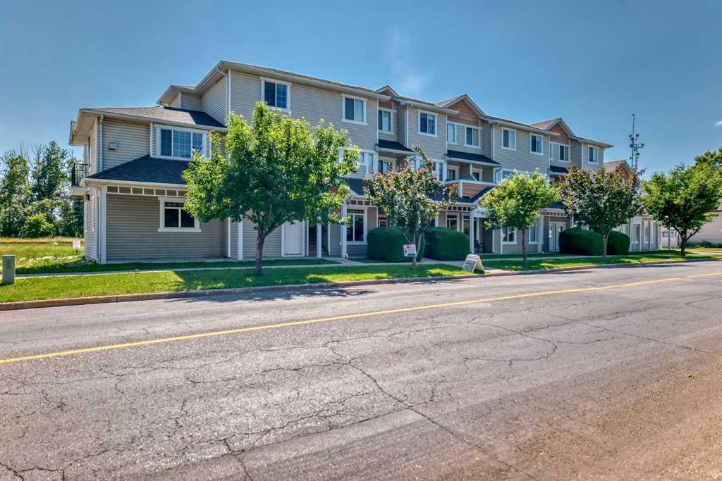 This unique private townhome in Olde Town Okotoks is an end unit featuring 2 bedrooms, with the primary located on the upper level and a 4-piece ensuite bath. The upper level also includes a laundry room with storage. The bright kitchen boasts maple cabinetry, a breakfast bar, and stainless steel appliances. The open-concept great room features a corner gas fireplace and a French door leading to a covered patio. Brand new carpets have been recently installed, adding to the bright and sunny open plan. The property includes a triple shared garage, with one side allocated for this townhome. Located within walking distance to downtown Okotoks, boutique shopping, and river pathways, it offers lower condo fees and the option for quick possession.