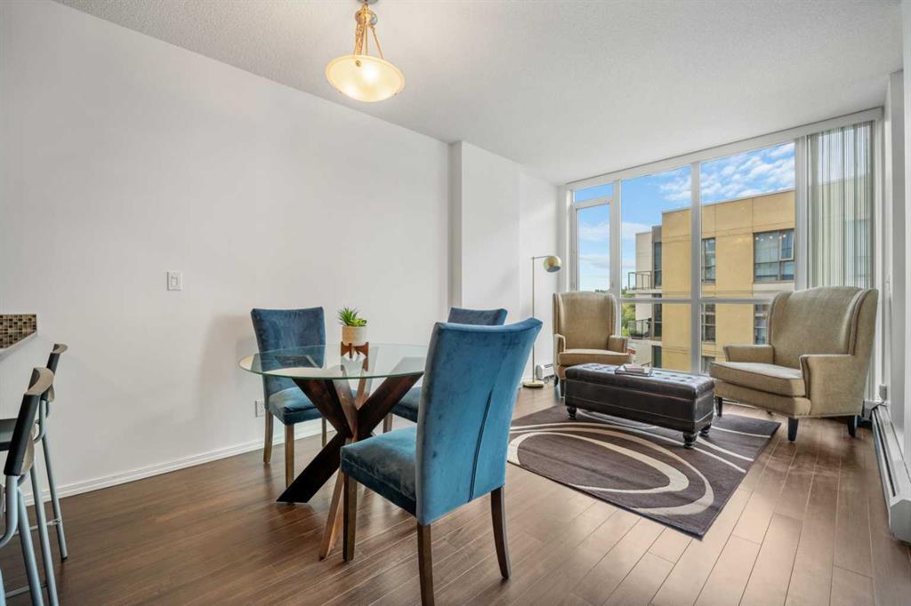 Welcome to this remarkable home at Riverfront Pointe in East Village. This 2 Bed, 2 Bath unit offers 747 Sqft. of living space. Laminate & Vinyl Flooring and warm tones throughout create an irresistible blend of elegance and comfort. The layout highlights a spacious living room with an impressive amount of natural light, complimented by a walkout balcony with views overlooking the Bow River. The full-sized chef's kitchen features stainless steel appliances, expansive stone countertops, and a breakfast bar. The Primary Bedroom is quite spacious and is equipped with its own 4-piece Ensuite Bath. The Second Bedroom is also relatively spacious and is directly adjacent to the additional 4-piece Bath. Completing the unit is an IN-SUITE LAUNDRY room, custom California Closet storage in both bedrooms & bathrooms, and New Hunter Douglas panel blinds. Also included with the unit is a TITLED Underground parking stall, and there is ample visitor parking and street parking for guests. The building itself is equipped with a Fitness Center (featuring brand new gym equipment), a Recreation/Games room, and on-site concierge. Riverfront Pointe backs on to the Bow River Pathway system and is within close proximity to Superstore, Bow Valley College, Studio Bell, Village Ice Cream, EV Dog Park, Prince's Island Park, The Calgary Stampede Grounds, and all of the other supreme amenities Downtown's East Village has to offer.