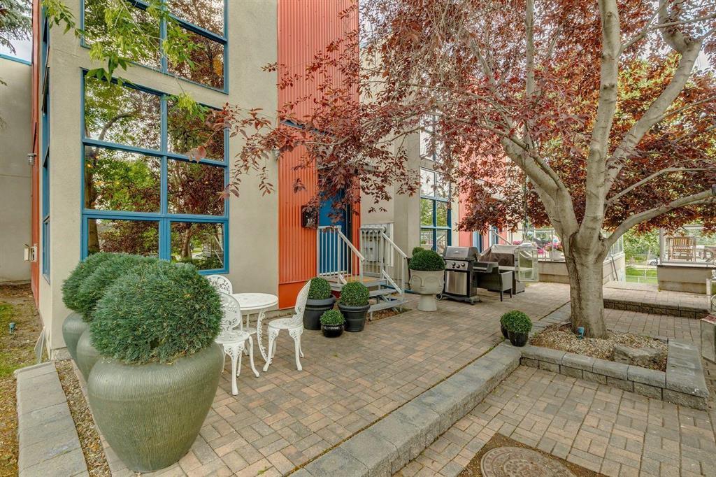 Welcome to the Chartreuse Lofts! Unit 104 shares only one common wall and is one of only 12 private, sophisticated live/work 2-storey lofts located at the end of 17th Ave SE on a quiet, (not a through) road nestled into a unique setting between mature green spaces, industrial warehouses and train yards all in the historic community of Inglewood. This meticulously maintained, 2-storey loft with a finished basement is an inspired blend of its surroundings; a unique work/live space that offers both beautiful and functional indoor and outdoor spaces. At over 1400sq ft of finished indoor space characterized by 10 and 18 foot ceiling heights, 2-story energy-efficient windows that bring natural sunlight and greenery inside while engulfing the entire SW corner of the unit, a stunning metal fireplace, polished steel open riser staircase, epoxy laminate, and an exposed I beam, this home also features a perfectly appointed floorpan with an open living and eat in kitchen with a separate dining room and a half bath on the main, a large primary loft retreat upstairs with a full ensuite and walk in closet and in the lower level a large finished room that could be used as a design studio, an office or media/gaming room, a sound studio/storage and another full bath! See comments on photos! And don't forget this home has a single titled shared heated garage, it is pet friendly and finally with a massive outdoor treed patio offering an abundance of garden space to entertain and a plethora of free parking for yourselves, your friends, family and clients, you will be proud to call this incredible place home! Call your favourite Realtor to view!!