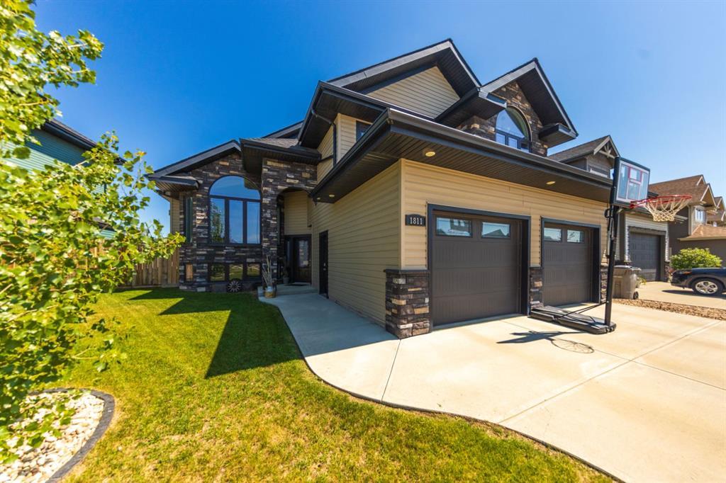 Welcome to your dream lakeside home! This modified bi-level is a real gem with amazing curb appeal. The stone-front facade and black window trim make a striking first impression. Inside, you'll love the open concept design. The modern kitchen has Jenn-Aire appliances, quartz countertops, and a big island, perfect for cooking and entertaining. It flows into a bright dining area, great for family meals. The cozy front living room features a stylish fireplace wall. The luxurious master bedroom includes a large ensuite with a soaker tub, custom shower, and a big walk-in closet. Downstairs, there's a spacious family room with a wet bar, plus two more bedrooms and a bathroom, ideal for guests or a growing family. The heated double garage is perfect for winter, and central air keeps you cool in summer. The backyard is a peaceful oasis with a children's play center and beautiful gardens. Enjoy coffee on the custom deck or host barbecues in this private paradise. This home combines elegant design and modern amenities for comfortable, luxurious living. Welcome home!