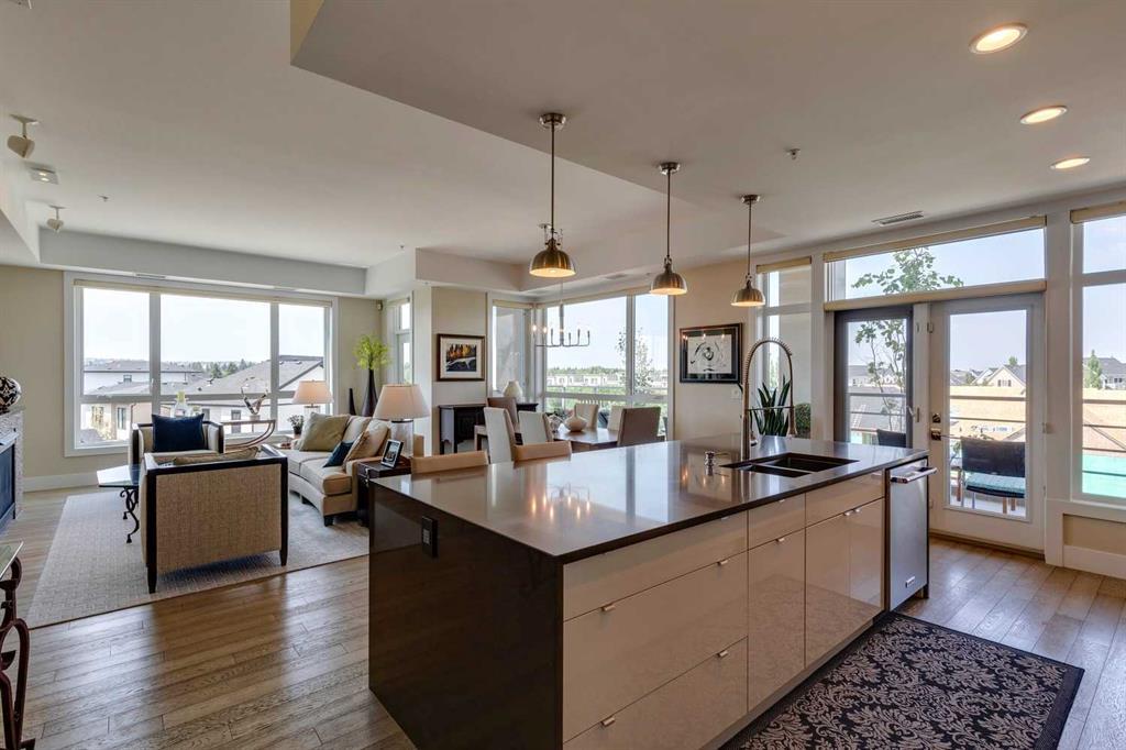 Live luxuriously in this 1,535 square foot CORNER UNIT with 10-foot ceilings and high-end finishes. This 3-bathroom, 2-bedroom PLUS DEN unit has been meticulously maintained by the original owner and is ready for its next resident. The bright and open-concept floor plan offers expansive north and west-facing windows with custom Hunter Douglas blinds. The hardwood flooring throughout and warm colour scheme make this home modern and inviting. The chef's kitchen features ample storage and room for hosting around the large quartz island. Stainless steel Kitchen-Aid appliances include a built-in oven, microwave and a 5-burner gas cooktop. Enjoy coffee in the morning or dinner at sunset on your wrap-around, 300-square-foot balcony. One access point from the living room and one off the kitchen make it the perfect setup for cooking on your natural gas BBQ. The primary bedroom, just off the living room is a true oasis. With plenty of space for a king-sized bed, a large walk-in closet with custom storage solutions, and a 5-piece ensuite bathroom featuring a stand-alone tub and shower, water closet and dual sinks! Bedroom two is a perfect lounge room, office or guest space with its attached 3-piece ensuite bathroom! Stay cool in the summer with CENTRAL AIR CONDITIONING and warm and cozy in the winter next to the gas fireplace. You won’t run out of storage with a full laundry room with upper cabinets and loads of counter space plus an additional storage locker in the parkade where you’ll also find your TWO TITLED UNDERGROUND parking stalls. This building is secure, well-managed, pet-friendly and luxurious throughout the common areas - you’ll feel right at home. The vibrant community of Currie Barracks has it all, picturesque streets and greenspaces, great access to the city's main thoroughfares all while being nestled into a quiet inner-city neighbourhood! Make sure to check out the walkable amenities like Wild Rose Brewery, Burwood Distillery, Veranda restaurant, and The Inn.