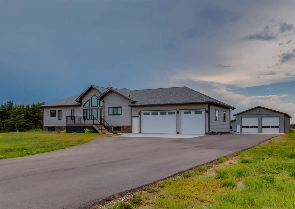 Tranquil country living awaits in this architecturally stunning dream home and 3500 sq. ft. shop on 6 scenic acres. Just minutes to Calgary or Okotoks in the heart of beautiful Foothills County. This extraordinary bungalow is expertly positioned to take full advantage of the majestic mountain, peaceful prairie and breathtaking sunset views. Loaded with high-end upgrades that include central air conditioning, a reserve osmosis system, underground sprinklers, an automatic security gate and much more. This truly impressive home has it all! The main level is outfitted with luxury vinyl plank flooring, grand vaulted ceilings and entire walls of glass that stream in seemingly endless natural light and frame those outstanding views. The open floor plan allows ample room for relaxation and entertaining with a charming double sided fireplace centering the space. Culinary creativity is inspired in the gourmet kitchen effortlessly combining style with function featuring granite countertops, full-height cabinets, soft-close cabinetry, upgraded appliances, timeless subway tile, cleverly incorporated storage, a butler pantry for ease and a massive centre island to gather casually. Adjacently the dining room is an elegant backdrop to your meals with breathing views and a fireplace adding a cozy atmosphere. Retreat at the end of the day to the opulence of the primary bedroom – a true owner’s sanctuary thanks to trendy barn sliders that open to reveal a custom closet and a lavish 5-piece ensuite boasting dual sinks, built-in storage, a deep soaker tub and a separate shower. Both additional bedrooms on this level are spacious and bright with easy access to the stylish 4-piece bathroom. Gather, entertain or just sit back and relax in the finished basement with in-floor heating and tons of room for movies, games and more. 2 more bedrooms and another oversized full bathroom with loads of counter space complete this level. The expansive deck encourages summer barbeques and lazy weekends lounging absorbed in those stunning views while the birds sing. Trex decking, a 15’ x 11’ remote controlled awning and Gemstone lighting further add to the allure of this tremendous outdoor space. Rounding out this sensational property is the triple car garage with room for way more than just vehicles plus is equipped with in-floor heating, epoxy flooring and built-in cabinets. Obtain an uncomplicated work/life balance in the versatile shop. This huge space has numerous windows for endless natural light plus has the advantageous features of floor drains on either end, 14' doors, power inside, water, gas and sewer lines to the shop as well as an addition for an office and future bathroom with everything already roughed in. This unrivalled property embraces the rolling foothills combining country charm with modern estate living that is quiet and private yet mere minutes to everything, giving you the best of both worlds!