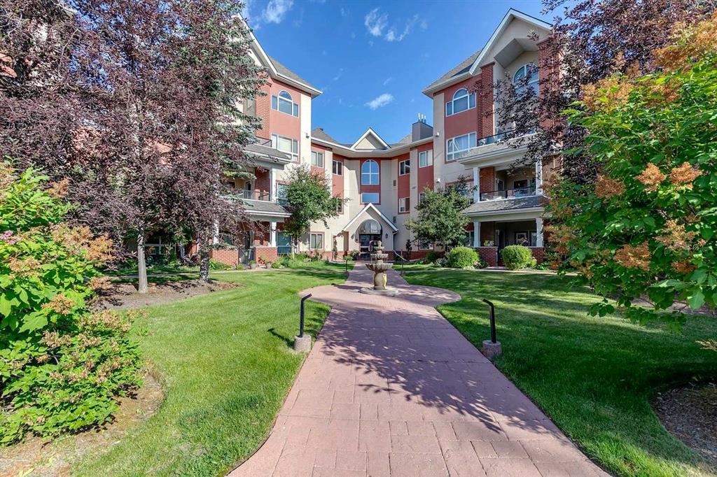 Discover your ideal living retreat amidst beautifully landscaped grounds at The Tudors. This meticulously maintained home offers a serene and relaxing atmosphere, tailored for those who cherish an easy-going lifestyle. Step into the kitchen featuring a breakfast bar, a large pantry, and tons of counter space—a delight for meal preparation and hosting gatherings. Adjacent, a versatile den awaits, perfect for remote work, studying, or creating your personal library. The dining area comfortably accommodates family gatherings, while the living room features a built-in shelving unit around the fireplace, ideal for displaying family photos and enjoying intimate evenings. Retreat to the primary bedroom, offering a spacious layout, a walk-in closet, and an ensuite with a dual vanity, a soothing tub, and a separate walk-in shower. A second bedroom provides further comfort for guests or family members. Relish the outdoors on the generously sized balcony, perfect for al fresco dining or unwinding amidst peaceful surroundings. Conveniently located on the first floor for effortless accessibility, particularly beneficial for older adults, this residence boasts two titled underground parking stalls. The well-managed and friendly community features a private gym, residents club with games area, and private function rooms. Additional amenities include a car wash, woodworking area, beautifully maintained landscaping, proximity to Westhills Shopping Centre and Aspen Landing, fabulous asphalt walking paths, parks, easy mountain access, and close proximity to public transit. Experience the pinnacle of adult living at The Tudors, where every detail is meticulously designed to offer comfort, convenience, and a profound sense of tranquility. Schedule your tour today and discover your new sanctuary.
