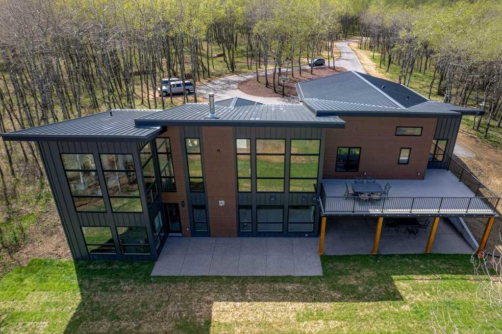 ESCAPE to PRIVACY, SPACE, QUIETNESS, NATURE and SERENITY! Beautiful, contemporary, virtually new, fully developed walkout bungalow on lovely 60 ACRES in Foothills County, about 20 minutes to the south area of Calgary and approx. 15 minutes to Okotoks. The land is gently sloped and has a wonderful mixture of trees and open areas. The 1 year-old home was built by Bradmar Homes in 2023 and contains expansive windows throughout allowing calming views of nature from virtually every room. A long winding driveway leads to a wonderful private setting for this home where one feels tranquility and a sense of escape. The home has efficient and modern construction materials and is a practical design for family living and entertaining. The main floor contains a grand living room space with full height windows, open to dining area and gourmet kitchen with large island, pantry, and high-quality SS appliances. The primary has full height windows and spa like en suite. There are 2 additional bedrooms, one including a kid’s playing loft, 4-piece jack & jill bathroom, 2-piece powder room, large laundry room with built ins. The lower level has expansive recreation room and gym with glass wall, corner home office, additional bedroom, 4-piece bath and large unfinished room with separate entrance. Some additional features include triple pane windows, A/C, custom on site cabinetry, metal roof, aggregate front porch, sidewalk and patio, low maintenance soffits, metal and engineered simulated woodgrain exterior, 200-amp service, excellent well and there is also a Mobile home at the front of the property currently rented. The seller will remove mobile home before possession if desired. The large land parcel provides endless options for enjoyment and further custom treatment.