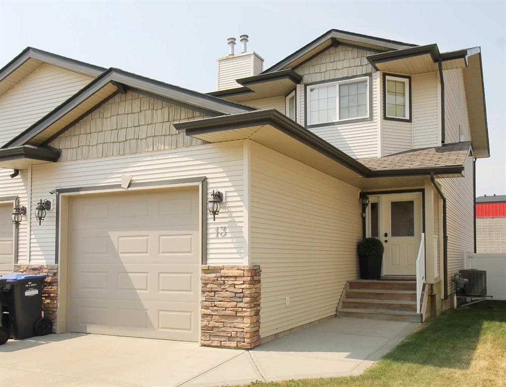 End unit townhouse with NO CONDO FEES and a perfect starter/downsizer or investment property! Located in a fantastic location, this 4 bedroom, 2.5 bathroom end unit is a real credit to the previous owners! It is in great shape throughout and features an open floor plan on the main level with tile/laminate flooring, stainless steel appliances, pantry, lots of natural light and doors out to the 2 tiered, west exposed deck! The upper floor hosts 2 bedrooms, a 4 piece bathroom, a space perfect for the computer desk, and the primary suite, complete with 4 piece ensuite and walk in closet! In the basement, there is one bedroom that has been completed and the rest of the area is ready to make your own! Tired of the heat wave? This property boasts A/C and is perfect for cooling off after a hot day at the beach! #13 Legend Court also has quick access out to hwy 11 if you are a commuter, and is a very close walk to the nearby park/playground and soccer pitches at Leader field. Schools, dining, the spray park, and the Sylvan Lake Gulls Field are all closeby too! Don't wait on this one, it will go fast!