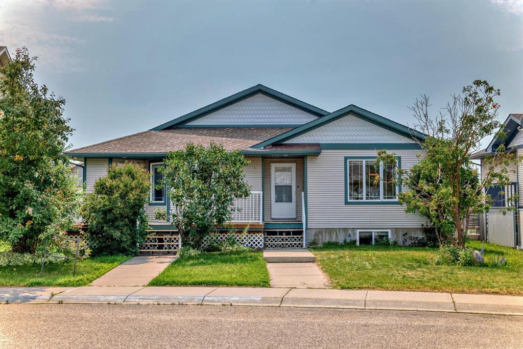 Welcome Home! This lovely half duplex is looking for its new owner. Walking through the front entrance you will find the living room which is has an abundance of light from two big windows and a built in unit that houses an electric fireplace and a place for your t.v. The kitchen is bright, open and has 2 smaller pantries. The 2 main floor bedrooms are large enough to fit king beds and there is a 4 piece main bathroom as well. Nestled into place by the back door, you find your washer and dryer. Out the back door you will see a two-tiered deck that has room to Bbq for family and friends and leads to your fully fenced back yard. Beyond the fence you will step out onto your back parking area. This back yard all of the way to the back lane could be reimagined to include your future garage or other fantastic possibilities. The Basement has 2 more bedrooms - one of which has a huge walk in closet with a door leading to a 3 piece bathroom. This bathroom includes a large corner soaker bathtub. There are two more spaces in this basement that would provide a great space for Tv, gym, gaming and more. This home is across the street from a large green space which includes a park down at the far end. Shopping, schools and a golf course near by, this is only a short 35 minute commute to Calgary. Don't miss out on this one, schedule a viewing today.