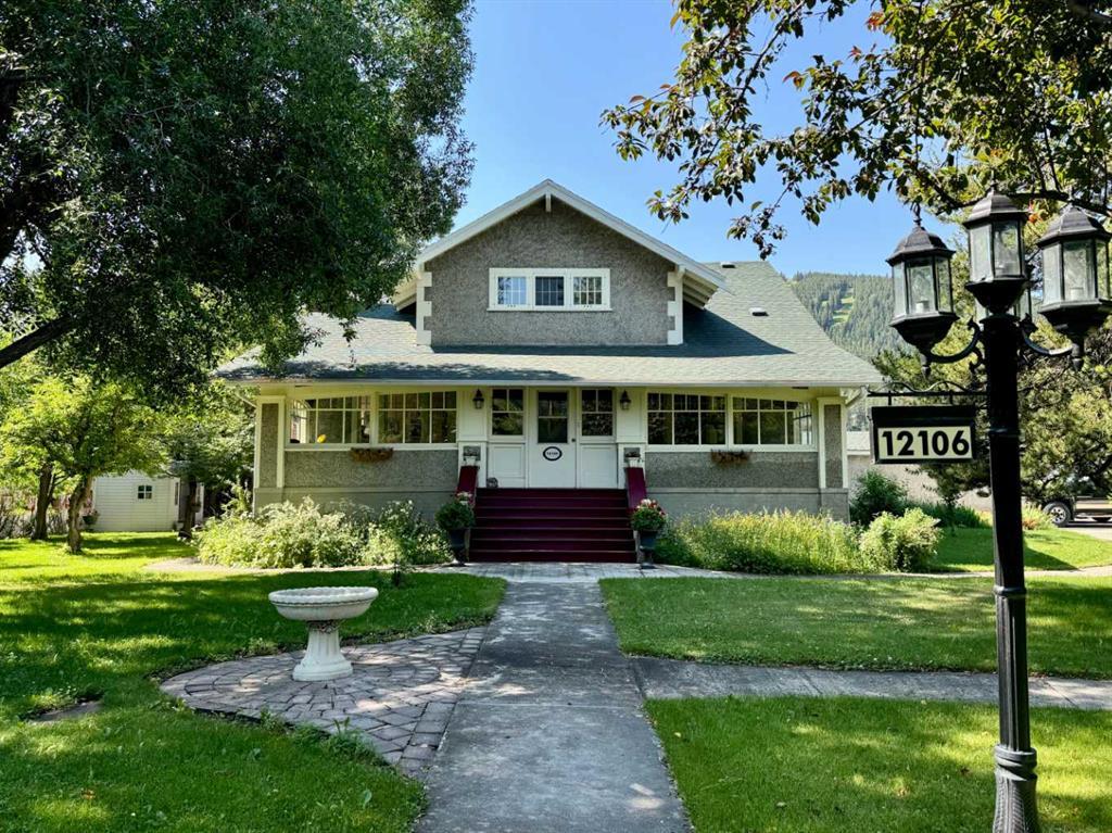One of very few Stately Homes of this vintage in the Crownest Pass. Lovingly maintained with many upgrades. The grounds are exceptional, treed, pathways leading from the front of the property, many shady spots to sit and enjoy the beautiful yard. 100' X 120' corner lot, double garage, concrete pads for RV or extra parking. The spacious front sunroom leads you into the livingroom, double doors to parlor/office (or could be a 3rd main fl. bedroom). French doors to the diningroom, then onto the kitchen to custom cabinets by local craftsman jenn air range, pot filler & hot water dispenser. Two bedrooms on this floor, 4 pc. bath, hall leading you to upstairs area with a second livingroom, another two bedrooms and bathroom. Plenty of builtins in the bedrooms and this upper livingroom.The basement is full finished, with two offices, large rec. room, two large storage rooms, Rannai hot water on demand, water softener and 3 pc. bath.. You can make these rooms what you want or need. Easy access to the garage. This home truly is one of a kind. A must to view.