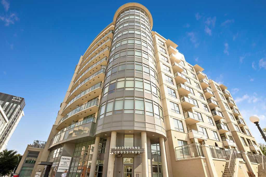 A great opportunity to own this beautiful, AIR CONDITIONED, well designed, well maintained ONE BEDROOM PLUS DEN in the vibrant community of Bridgeland! This unit is uniquely situated on the next-to-top floor which has only 6 units! It's location provides privacy and quiet (no sharing of balconies here!) while offering a beautiful view of parks & hills and loads of natural light pouring in. The condo is spacious and open with the kitchen having classy high gloss cabinetry, quartz counter tops, large island with room for seating, gas range and built-in oven. Large living area is bright & sunny and opens to a balcony providing those beautiful views and overlooks the private courtyard below. The corner bedroom meets all needs for space and has a walk-through to the 4 piece bathroom. Laundry is in-suite. The DEN/FLEX room makes this unit very unique and provides endless opportunity to use this bonus space! TITLED PARKING and assigned storage space are included. This complex is a complete package with Fitness Room, Social Room, Bike lockers, Guest Suite, Media Room, Visitor parking and private gardens with patio, bbq, communal planters and putting green. All this and in an amazing location in dynamic Bridgeland, close to LRT and an easy walk to downtown!