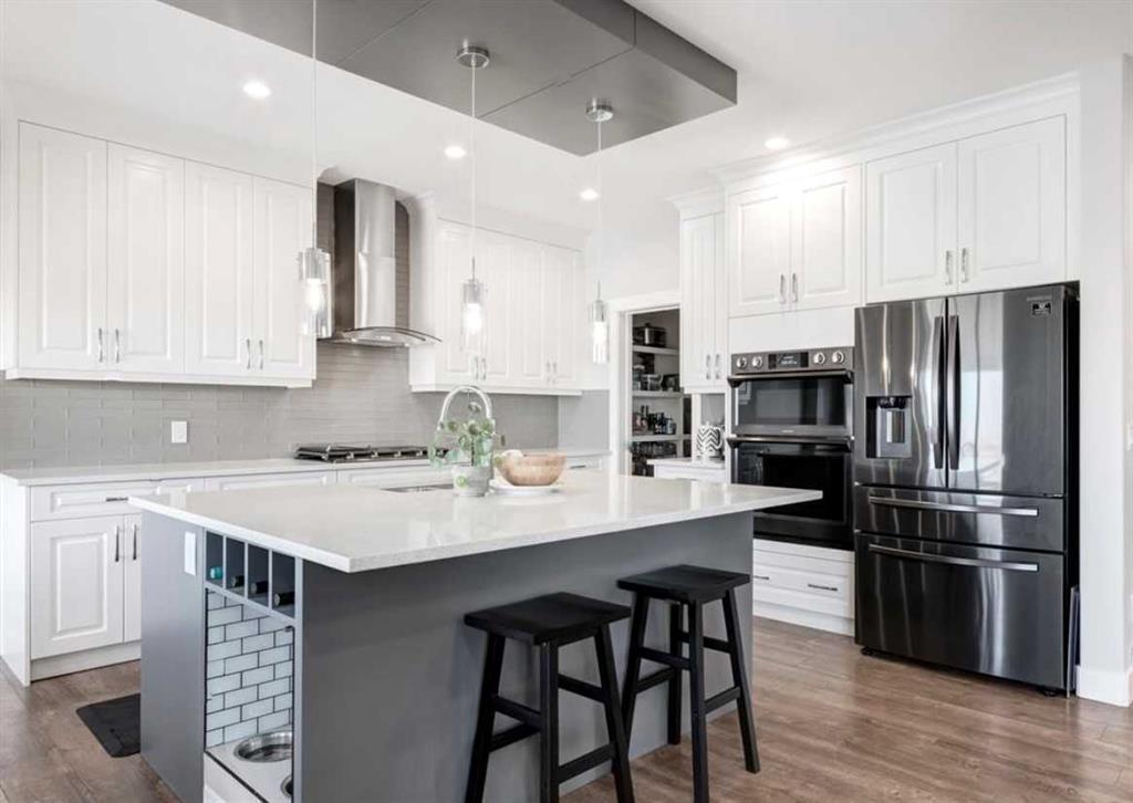 Welcome to your new dream home—an almost 2,200 sq ft, four bedroom two-story residence backing onto a park in the family-oriented community of Wildflower Ranch. This newly built home offers modern upgrades and thoughtful touches for comfortable living. As you step inside, you are greeted by beautiful finishes, including white railings with black spindles, 8 ft doors on the main floor, and 9 ft ceilings on both the main floor and basement and LVP throughout. The open concept main floor is designed for seamless living. The kitchen, dining, and living rooms flow effortlessly into each other, creating a spacious and inviting atmosphere. The kitchen is a chef's delight, featuring cabinets that reach the ceiling, a gas range, quartz countertops, and sleek black hardware and faucet. A spacious pantry, lined with MDF shelving, ensures ample storage. All appliances, including a washer and dryer, are included for your convenience. There is also the option to add butlers/spice kitchen. On cooler evenings, you can enjoy the cozy warmth of a gas fireplace in the living room, beautifully finished with a tile surround. The main floor also features a bedroom/office and a full bath, providing convenience and flexibility for guests or family members who prefer not to climb stairs. Also, the mudroom is equipped with a stainless-steel sink and black pull-out faucet. Heading upstairs, you will find three additional bedrooms and a bonus room, offering plenty of space for family and guests. The primary bedroom stands out with a stylish feature wall, adding a touch of sophistication to your personal retreat. With 5-piece ensuite including shower and a freestanding tub. Laundry room is also located upstairs, providing ease and convenience. The home’s plumbing is designed for efficiency with an energy-efficient 50-gallon water tank and slow-closing toilet seats in all bathrooms. A separate side entrance leads to the basement, offering potential for customization or additional living space. Ensuring comfort during colder months, the garage is drywalled and taped, and includes a gas line run for a garage heater. Front yard sod is also provided by the builder. This home combines functional design with sophisticated finishes, offering comfort and convenience in a beautiful setting. Welcome to your new dream home in Wildflower Ranch! ** pictures are from a previous build