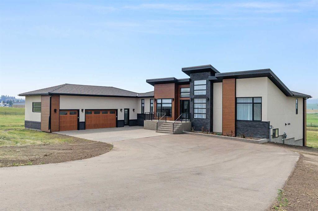 Discover an extraordinary home nestled in the exclusive community of Hamilton Heights, located just minutes from Calgary. Prepare to be captivated by this modern walk-out bungalow the moment you arrive. Enduring materials like rubber roofing, brick & wood-style accents enhance the exterior. Step into the foyer & you'll be greeted by the expansive family room with panoramic windows that perfectly frame the breathtaking vistas. This room is defined by its striking full-height, tiled gas fireplace with floating benches on both sides. The spacious layout features soaring 10’ to 14’ ceilings, hardwood flooring that runs seamlessly throughout the shared living spaces, exceptional high-end light fixtures & all window coverings are primarily remote-controlled. Next to the foyer is a glass-enclosed flex room with glass barn doors that allow natural light to fill the space. The chef-inspired kitchen features full-height custom cabinets, a large island with an under-mount silgranit sink, quartz countertops, tiled backsplash, a custom-built hood fan with floating shelves on either side, S/S luxury brand Fisher & Paykel appliances including a gas cooktop, a built-in wall oven & microwave, a French door refrigerator & a built-in double drawer dishwasher. The dining area extends out & is surrounded by windows offering views in every direction. Step through the patio doors onto the spacious balcony. Off the kitchen is a walk-through butler’s pantry connecting to the dual-purpose laundry/mudroom. The main floor half bath is discretely tucked away. On the opposite side of the house is the primary suite, with luxurious carpeting, a counter area with a wine fridge, large windows & a standout accent wall. The high-end finishes continue in the spa-like ensuite, featuring a floating vanity with double sinks, oversized tile & glass shower & a striking free-standing soaker tub strategically placed to enjoy the views. Off the ensuite is the dressing room with gorgeous custom cabinets. A second bedroom with a walk-in closet & lavish 4-piece bath completes this floor. Glass-railed stairs lead down to the professionally developed walk-out level, a perfect space for entertaining. This level contains a rec room with wet bar, an island with granite counters, full-height backsplash, wine fridge & double drawer dishwasher. Patio doors open onto the covered deck. A unique wine room is situated to the right of the stairs. For those interested in staying fit, there is a fitness room & a yoga retreat space. A convenient half bath is steps away. If you're looking for the perfect home theater room, your search ends here. The utility room features 2 furnaces, low voltage wiring, instant hot water tank, roughed-in floor heat, & a water softener. Feel secure & protected with the premier security system. The oversized 3-car garage is 46’ 10” X 13’ 8”, almost 14’ high, has 8’ high garage doors & is set up with rough-in for a furnace. This home is fully covered under THE ALBERTA NEW HOME WARRANTY PROGRAM.