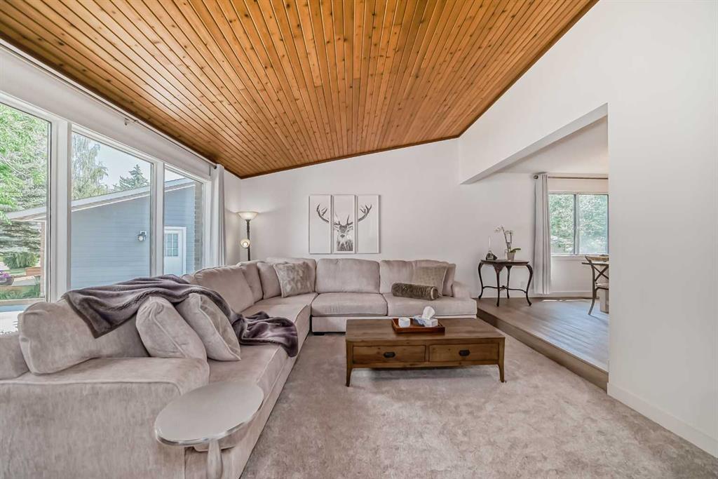 RENOVATED BUNGALOW on an 11,700 sf PIE LOT! Rarely do homes in this location hit the market. Perfectly positioned in a QUIET CUL-DE-SAC, this meticulous fully renovated oversized bungalow offers 3,230 sq feet of developed living space with wonderful basement development, an attached oversized double garage, and a sunny ENORMOUS SOUTHWEST BACKYARD. Filled with an abundance of natural light and a neutral palette, this charming home creates a warm and calming environment suitable for family living and entertaining. The foyer leads you to the front living room which showcases stunning vaulted ceilings and large windows. Step up into a well sized dining room featuring luxury vinyl flooring and loads of room for the family to gather for enjoyable meals and conversations. Relax around the floor to ceiling brick gas fireplace in the family room whilst enjoying the expansive views through the windows and sliding patio doors which lead you to the deck allowing ample space for summer babeques and peaceful morning coffees. The modern inspired white kitchen is sure to delight all cooks with ample storage and quartz countertops. The primary suite boasts a spa inspired 3-piece en-suite with a custom tiled shower. Two additional bedrooms share the 4-piece main bath. The well-designed basement showcases new carpeting, lighting, a large recreation room, family room, workout room, 3-piece bathroom, laundry room and extra storage. NEW FURNACE, 80 GALLON-HOT WATER TANK, AIR CONDITIONING AND HUMIDIFIER in 2023 are just a few of the features this amazing property has to offer! Ideally located in the family friendly neighborhood of Ranchlands with both public and separate schools, baseball and soccer fields, tennis and basketball courts, an ice rink and a highly active community centre make this the perfect place to call home!
