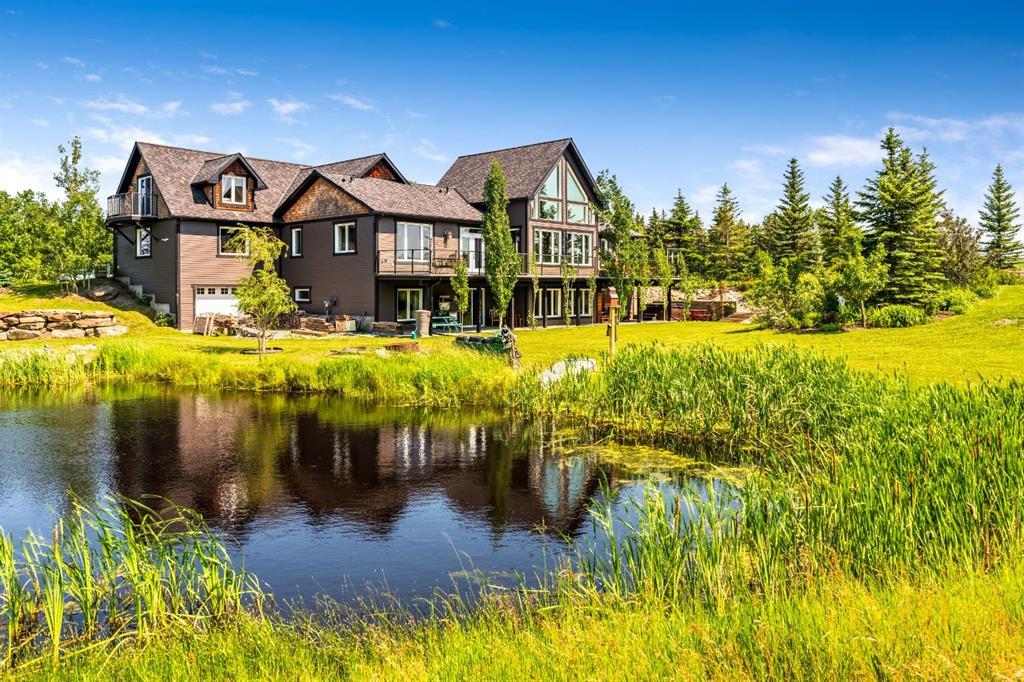 Welcome to acreage living at its finest. Located just 2 minutes South of Okotoks, lies a property where memories are made. Overlooking 6 acres of beautiful landscaping, fields, garden and your very own pond, sits over 4800 square feet of living space, to call home. On entry, this home immediately welcomes you with soaring vaulted ceiling's, framing a wall of great room windows, overlooking the property. You'll then notice floor to ceiling slate surrounding the double sided fireplace, along with copper accents and mantel details. Yes, that is hand scraped, teak hardwood flooring that you're noticing. Through the dining room you realize this is going to be a great space for family gatherings. You can't help but create culinary excellence in the country style kitchen with granite counters and exactly the right appliances for the job. Back through the great room and into the spacious primary bedroom, there's the fireplace, deck access and an ensuite with the perfect tub to soak or a steam shower to unwind. The walk in closet has custom wood organizers, as do all the closets in the home and you'll find the first of two laundry areas. Towards the triple attached garage and up the stairs is a massive bonus room with balcony views of the pond and Okotoks in the distance. On our way to the basement, it's a good time to mention that from foundation to rafters of the main floor, it's all ICF construction. Great for sound and efficiency. The walk-out basement with infloor heating goes on and on with windows and views, along with hobby room, second laundry room, family and rec room, full bath and bedroom. And then there's the game room but just imagine if off that game room, you had access to an attached 16'X22' shop with single garage door... It has that too! We hate to see you leave but be sure to take a look at the 30'X40" detached shop on your way out and we'll close the gate behind you. Truly a must see property that blends the best in acreage living with the convenience of town amenities, just next door.