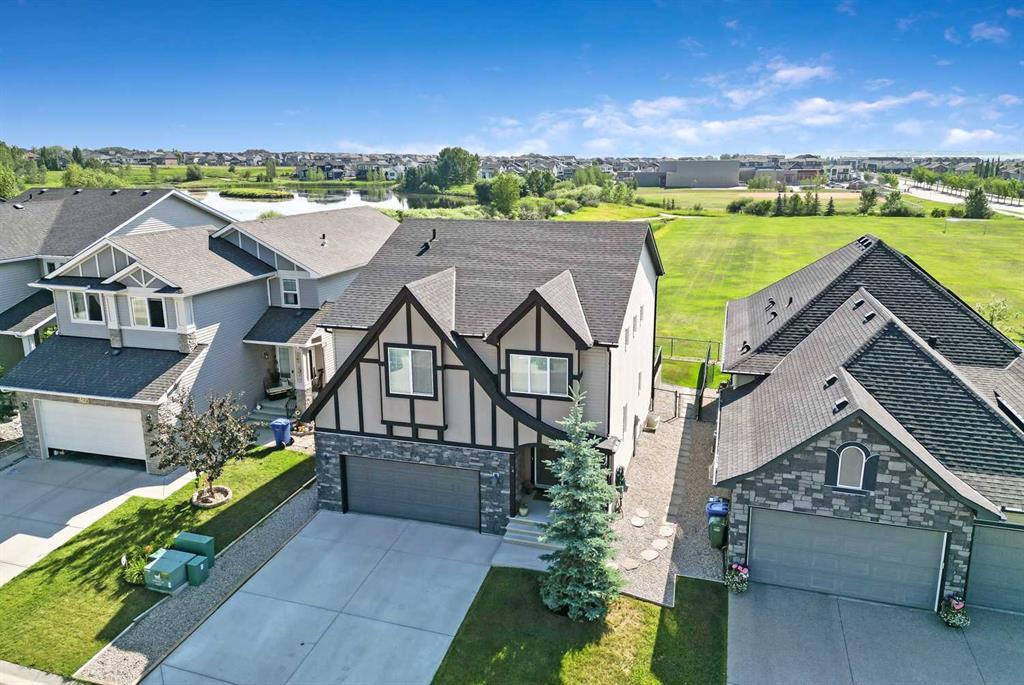 COME VIEW THE 3D TOUR & MORE - Click on the Multimedia/Virtual Tour Button! Masses of curb appeal with this air conditioned two-story beauty, situated in a quiet and family-friendly cul-de-sac in super popular Drake Landing on the North side of Okotoks. Ideal for commuters to Calgary. Backs to green space and with views of the Beatrice Wyndham pond and pathway system. 2,400 sf above grade and over 3,200 sf overall, of immaculately cared for and upgraded development. A grand foyer welcomes you in. Hardwood flooring runs through the cozy but spacious living room, with its gas fireplace surrounded by windows, and onto into the kitchen and large dining area. The kitchen features quartz countertops, soft closing cabinets and drawers, quality stainless steel appliances (the refrigerator was new in 2023), a breakfast bar that comfortably seats 3 people and there's a walkthrough pantry too! A mud room and half bathroom complete this level. Take the extra wide staircase to the upper level and ahead of you is the bonus room with its expansive open views, the large primary bedroom, with its vaulted ceiling and 5 pc en-suite bathroom, a laundry room (the laundry pair were also new in 2023), and two generously sized child/guest bedrooms that are conveniently located for the 4 pc family bathroom. The basement is a delight, with a home office area, a wet bar, a family room, a large 4th bedroom, a 3 pc bathroom, a storage room and the utility room. Everything is finished to a high standard. You will love the barn wood accents and you'll appreciate the double layer of DMX air gap subfloor that enhances the warmth underfoot. To the rear, you will absolutely adore the yard. A composite deck, with privacy glass panels, leads down to a stamped concrete patio that is surrounded by pretty planted borders. There's plenty of lawn area for the children to play or they can step through the gate onto the green space behind where you can watch them play safely. There's also a large shed and additional storage space underneath the deck. To round things off, you get a 22' by 22' double attached garage which is drywalled and insulated, has built-in wooden shelving and also benefits from PVC matting to help protect the floor and for easy clean up after the Winter! Outstanding quality & value...book a showing & make it yours!