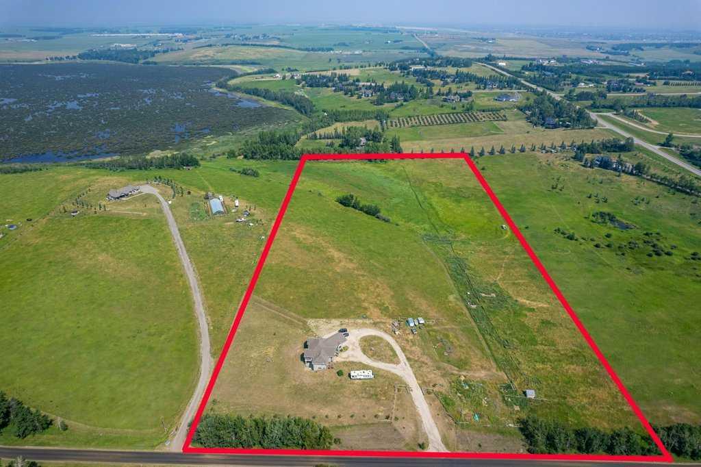 19.6 acres very close to Calgary with a 2017 built walkout bungalow in mint condition with lower-level rough in’s for custom development with private entrances. Just 3.2 KM from 96 St. & Spruce Meadows Green, 7.3 KM from the SW Ring Road, 10 minutes to Shawnessy & its numerous amenities and so close to Red Deer Lake & Red Deer Lake school, this is an opportunity to own a private, larger acreage with quick access to Calgary to raise your family and enjoy the country lifestyle! The land is flat & gently sloped, perimeter and cross fenced and the regenerative land has had no chemicals used on it since 2006! Enjoy open space with plenty of room for animals, hobby farm activity and various family activities. The home has 3 bedrooms & 2 ½ baths on the main, cathedral ceiling in the kitchen, living, dining room areas and gas fireplace in the living room. The Primary suite has a spacious en suite and walk in closet. The open kitchen has a good-sized island, corner pantry and plenty of cupboard space. West facing windows are double low e, argon sealed units. The undeveloped lower level is well designed with drainage rough in's to accommodate kitchen, bathroom & bedrooms with 2 separate single door entrances. The property has a strong well recently tested and the property has been regularly serviced including septic, furnace etc.