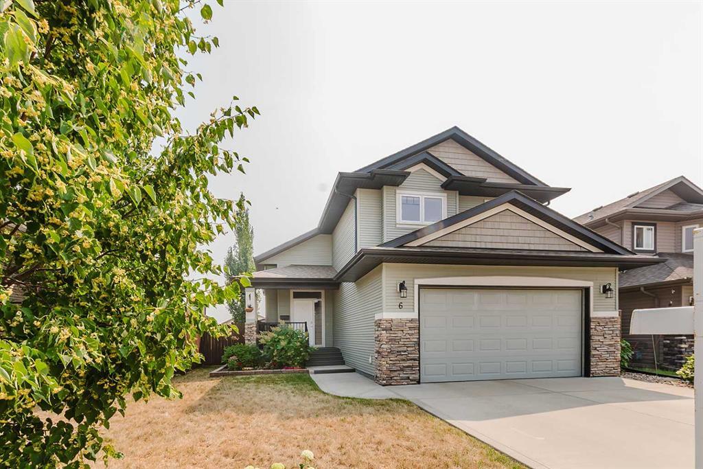 Welcome to this stunning modified bi-level home located in the highly sought-after Cottonwood Estates neighborhood in Blackfalds, Alberta. With 1,315 square feet of meticulously designed living space, this single-family home boasts 3 bedrooms and 3 bathrooms, offering ample room for a growing family. The large primary bedroom comfortably fits a king suite, comes with a spacious walk-in closet and a private 3-piece ensuite. The open floor plan with vaulted ceilings creates a bright and airy living space, perfect for entertaining. The living room features a cozy gas fireplace with a tile surround and mantle, open to the kitchen featuring 2 toned cabinets, a breakfast bar and a corner pantry. The basement is designed for comfort with in-floor heating, a large family room, a 4-piece bathroom, and the third bedroom. Additional features include ample storage under the stairs and a large laundry room with a washer and dryer included. The exterior of the home is your outdoor oasis and boasts extensive landscaping with interlocking brick patios, garden boxes with a sink, and a large shed for additional storage. The east-facing rear yard is perfect for morning sun and evening relaxation, featuring a deck with wrought iron railing and a gas BBQ hookup. Recent upgrades include new luxury vinyl plank flooring throughout, new blinds, a new hot water tank, a stylish new backsplash in the kitchen and rod iron railing on the deck. Located close to Iron Ridge Intermediate Campus and St. Gregory Catholic Schools, as well as nearby parks, this home offers the perfect balance of tranquillity and convenience. This beautifully updated home in Cottonwood Estates offers a blend of modern amenities and comfortable living. There is a gate at the rear for the potential RV or trailer parking (shed and flower box would need to be moved).