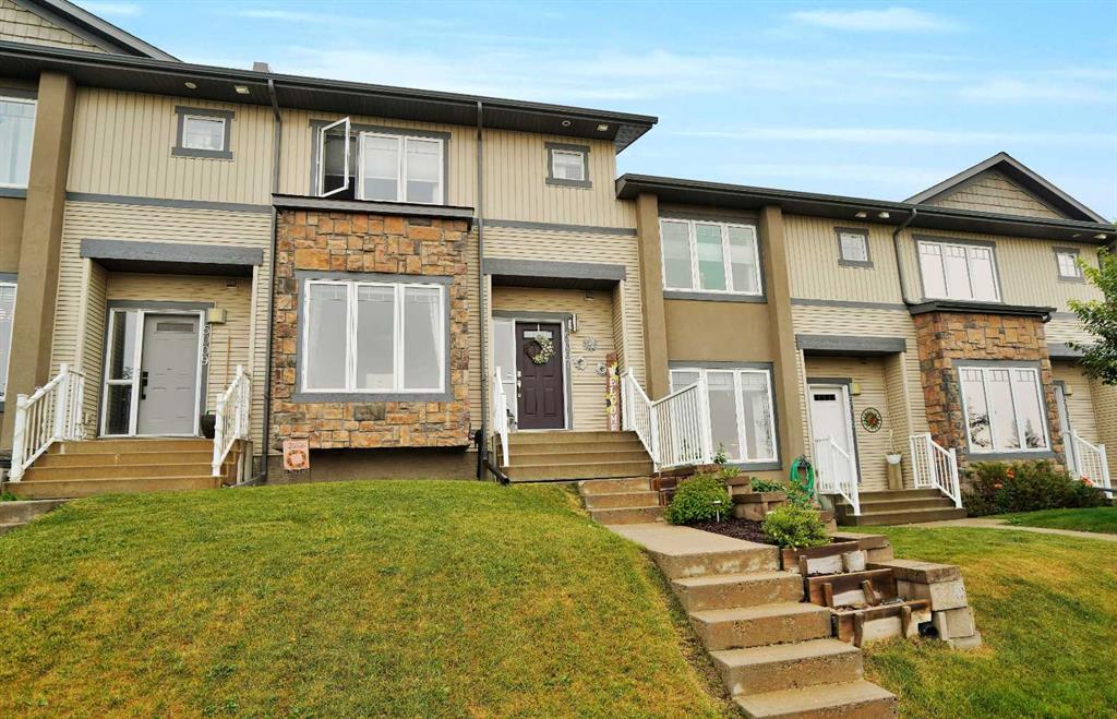 This nicely laid out townhouse with open floor plan and modern design, is an excellent property for young families, retired couples or investment buyers. With its location close to downtown amenities and its low and easy maintenance, this affordable home offers numerous possibilities. The foyer leads you to the front dining room open to the spacious kitchen boasting a large island with breakfast counter. The adjoining living room with gas fireplace, accesses the backyard. A half bath is conveniently situated for easy access from the main floor. The upper level provides a large landing with a computer desk, a laundry room and a full bathroom. The master bedroom provides a 3 pce ensuite and a large walk-in closet with built-ins. 2 additional bedrooms complete this level. The developed basement hosts a large family/rec. room, a bedroom and a 3 pce bathroom. The nicely landscaped fenced yard offers a concrete patio, a grass area, and access to the single detached garage. A gravel pad is also available for additional parking. Extra features include central A/C, high ceilings with recessed lighting, built-in storage and bookshelves. This Diamond Key Homes built townhouse, offers a desirable and unique floor plan that will meet all of your needs and expectations.
