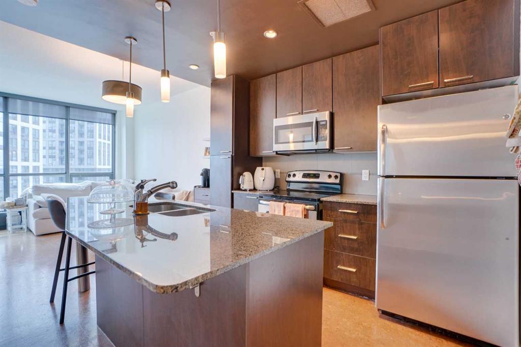 Located in the much sought after Keynote!!. Within walking distance to all amenities especially the Sunterra Market., located on the 10th floor with Panoramic Views, unit comes with titled Parking,. The desirable downtown building offers on site amenities such as Fitness Center, TV lounge, Pool table, sauna, guests suites, bike storage, onsite manager and much more. Tenant occupied need 24 hours notice.