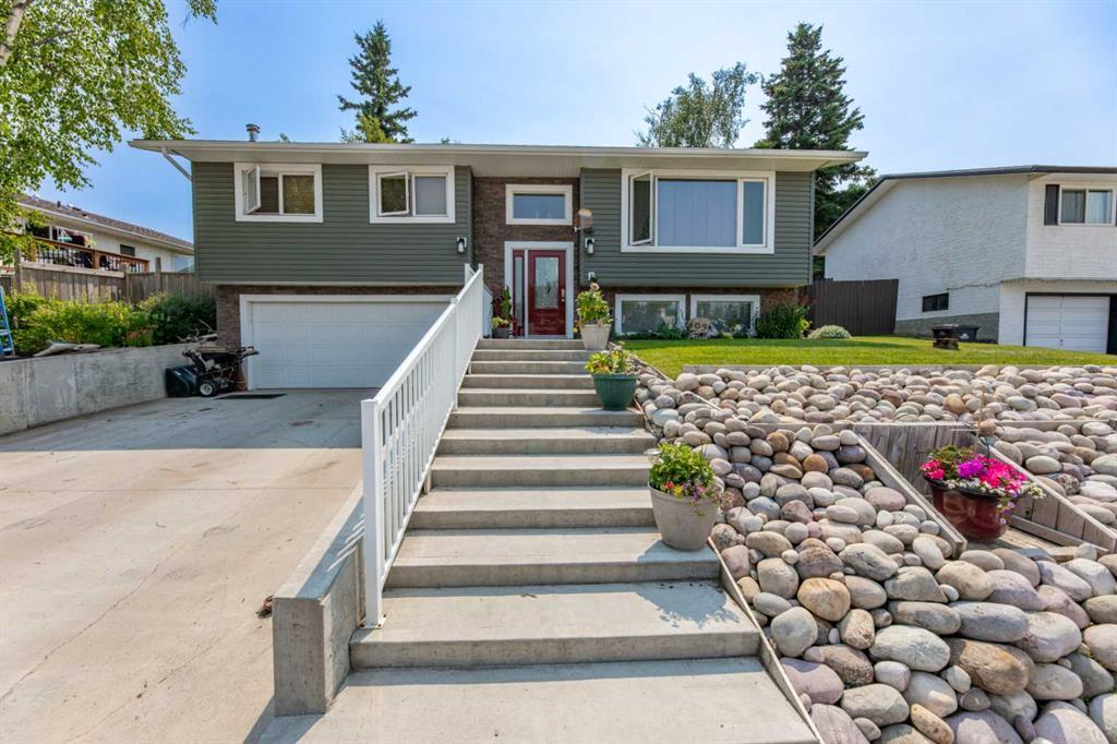 This extensively upgraded single family home offers 4 bedrooms and 2 baths in a bi-level floorplan that's easy to live in. The main floor living room is at the front of the home, it's bright and very spacious. The dining room features patio doors out to the south-facing deck and is open to the kitchen with newer cabinetry, stainless appliances, and plenty of counter and cupboard space. This level also has 3 bedrooms, a renovated full bath, and handy laundry room. The updates such as hardwood flooring, new light fixtures, doors, and several windows are of good quality and will allow the new owner to move in and enjoy. On the lower level, there's a family room with gas stove, a 4th bedroom, 3pc bath, and utility room with shelving and storage space. Plus, there's access to the 24' deep double attached garage. The exterior of this home is equally as impressive with new vinyl siding, stone accents, newer shingles, and front concrete driveway and walkway. The landscaping and gardens can't be overlooked with the front river rock garden, many built-in planters in the back, several perennials, and a well-kept lawn. The fenced yard has alley access with an RV parking stall. This property is in a great location and a must to see.