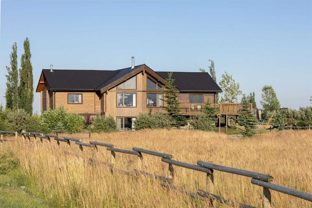 Welcome to this 9-acre slice of paradise just off of Highway 2 south of High River with paved access and stunning mountain views. This cedar log home, boasting five bedrooms and three bathrooms, has been meticulously maintained and tastefully updated throughout. As you step inside, you will notice the incredible craftsmanship and design along with an open-concept living room, kitchen and dining area with vaulted ceilings, a wood-burning fireplace and large west-facing windows offering natural light and pristine mountain views. The primary bedroom has a walk-in closet, a newly renovated bathroom, and french doors leading out to the wrap-around balcony. The main floor has 2 additional bedrooms along with a bathroom and access to both west and east-facing patios. As you step down into the walk-out basement, you will discover a versatile space ideal for a living room, games area, and personal gym, flooded with natural light. The plush carpeting with its supportive underlay extends into the two basement bedrooms, one of which offers direct access to the elegantly designed three-piece bathroom. The oversized garage, like everything else, was built to perfection, utilizes rubber roofing with a lifetime warranty, and can handle anything Alberta weather can throw at it. The property line is fully fenced and has over 300 poplar and willow trees planted with a drip irrigation system plus lilac and apple trees planted closer to the property. This unique home offers an entryway into the Albertan dream and won't last long so schedule your viewing today!