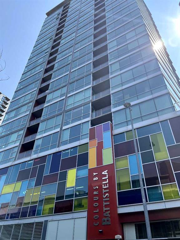 Welcome to the sought after Colours building! Now is your chance to secure your downtown urban retreat on the 8th floor. Perfect balcony exposure overlooking the courtyard and all the convenience of downtown sophistication. This 851 sq ft two bedroom two bath condo has the best layout. Open kitchen to the living dining areas, full height windows and high ceilings. Loads of natural daylight. Dark brown cabinets and stainless steel appliance package compliments your colour scheme throughout. Both bedrooms are generous size, both with professional built-in closets, the primary is large enough for a king bed and boasts a full ensuite bath with shower/tub combination. Incredible polished concrete flooring throughout, very sheik! The thoughtful planning in the building is fantastic - supports urban living and all the extras that one required to maximize comfort and convenience. Complete with gas line on the balcony for your year round BBQ convenience. Enjoy the fourth floor access to the outdoor patio areas wrapping around from east to the west side of the building. Enjoy the security of the indoor parkade keeping you and your vehicle warm and dry all year long. Separate storage room for bicycles as well. This location is second to none for walking access to downtown, 17th Ave SW trendy shops, restaurants and all the incredible things downtown Calgary has to offer! Building is Airbnb friendly!