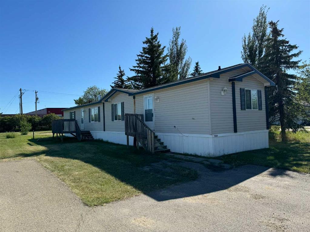 PRICE REDUCED!!!! This mobile home is in Cheviot Heights Mobile Home Park, on Peace River's east hill. Shopping and fast-food restaurants are within walking distance. This home features new carpeting in the master bedroom, with a spacious walk-in closet and full bathroom ensuite. The kitchen and living room have an open floor plan, and there is a large laundry room with storage. Two more bedrooms and another full bath are found at the front of the unit. The electrical tape under the unit was all redone six months ago. If this is what you are looking for, then you should check it out!