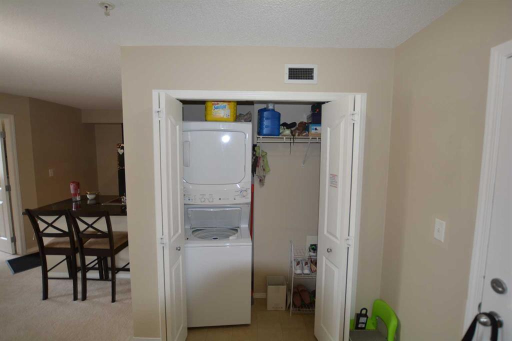 Welcome to a newer 2 bedroom + 1 bath main floor condo in Saddleridge. This unit is walking distance to the C-train and numerous plaza's in the Community. This unit is now 1st time listed. In suite stacked laundry. Kitchen has black appliances along with a large pantry with tons of shelve space and storage. Primary bedroom is large and faces south. Has a walk in closet along with a 4 piece bathroom. An additional bedroom for guests or a roommate. Unit comes with a titled underground parking spot. Don't miss this great opportunity to own a newer condo under $300k.