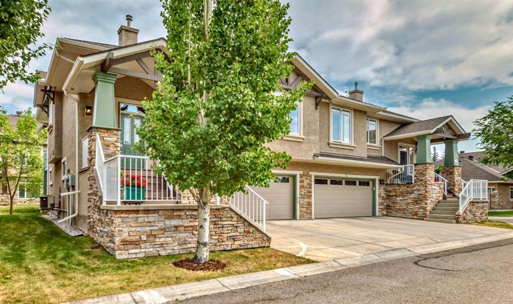 Welcome to DISCOVERY WOODS VILLAS! Amazing 2138 sq. ft of total living quarters featured in a FULLY FINISHED WALKOUT, END-UNIT villa BACKING onto a PRIVATE TREED GREEN SPACE with double attached garage and CENTRAL AIR CONDITIONING! This HIGHLY SOUGHT AFTER LOCATION is nestled on a QUIET INNER STREET in Discovery Woods Villas. Secluded in the upper area of Discovery Ridge, steps from the pathway systems leading to Griffith Woods Natural Forest Reserve and the Elbow River. Bright and filled with natural light, featuring a south exposure from your front porch and kitchen balcony. Step through garden doors onto an expansive upper deck or to the shade under the covered lower patio for serene relaxation. This home has been meticulously maintained, featuring gleaming hardwood flooring throughout the main level. The open kitchen features plenty of cabinets, walk-in pantry, stainless steel appliances, granite countertops and a large breakfast bar overlooking the dining area. Enjoy the large living room with view of trees overlooking your upper deck. The primary bedroom offers a large walk-in closet and 4pc ensuite featuring a fully tiled bath/shower combination. Main floor laundry completes this level. The lower level is enhanced with 9’ ceilings and offers a family room with cozy gas fireplace and built-in cabinets with easy access to your lower walkout patio. Large second bedroom complete with double closets, and a second 4-piece bath. Additional storage within the mechanical room. Enter to the finished insulated double attached garage with epoxy flooring. Additional highlights include convenient central vac system, and comfortable central air conditioning. Walk down to local stores and services, pickle ball and tennis courts, or skate in the winter. Extremely well managed complex: no age restrictions and pets are welcome with board approval. Enjoy your turn-key no maintenance lifestyle in this immaculate home. Plus, easy access to Canmore and Banff on the westside of Calgary. Call today!