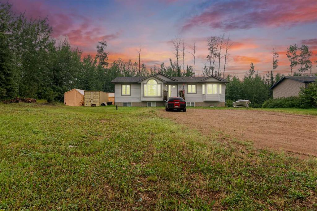 Welcome to 116 Hilyard Crescent located in Anzac approximately 45 km’s from Fort McMurray. This tree-line property features 1 acre of land in a quiet community with access to all essential amenities including two schools from K-12, grocery store, and a modern sports & recreation center that offers tons of programs for kids. This 2011 bungalow offers almost 3000 sqft of interior space including 7 beds (3+4), 3.5 baths, a fully developed basement equipped with in-floor heating, a kitchenette & air conditioning to keep you cool during those warmer months. The bright & open main floor features a cozy living room with high ceilings and a gas fireplace. There is a functional kitchen with stainless steel appliances, central island with breakfast bar seating, and a dining nook with access to the large rear deck & backyard. The upper level has 3 spacious bedrooms including the primary suite with dual closets and an attached 4pc ensuite with a jetted soaker tub & stand-up shower! The basement offers an additional 4 beds & a shared 4pc bath. There is also a large rec room/kitchenette & second laundry room which could be used as a rental unit or additional family/playroom. This property also offers tons of parking or space to build a large, detached garage pending RMWB approval. This home also has TELUS Fibre Optic and the City Water/Sewer will be hooked up in September. Call or text today to schedule a private tour!