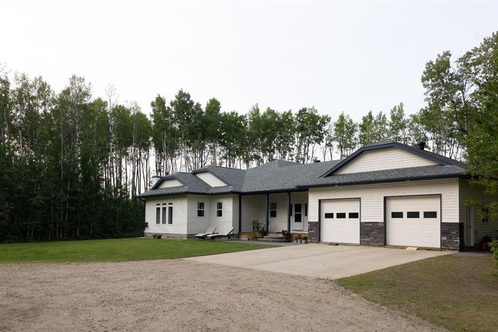 Welcome to this stunning custom built bungalow nestled on just under 10 acres. Located SW of town, on a dead-end road, this property offers the perfect blend of privacy and convenience, with town less than a 20 minute drive away. Step inside to discover a beautifully updated interior featuring maple cabinets, vinyl plank floors, and plenty of storage space. The spacious living room with a wood-burning stove is the perfect spot to cozy up on chilly evenings. The main floor features a large master bedroom and ensuite as well as main floor laundry. The well-designed basement offers additional living space with two bedrooms, in-floor heating, a large storage room/office, bathroom with double sinks and easy access to the garage. There’s also the possibility to develop 1-2 more bedrooms in the basement if needed. The manicured yard is sure to impress. Huge well established garden, fenced and set up for horses, large pond and a 32x60 shop providing ample storage space. With easy access to crown land and the Wapiti river, you’ll have endless trail riding and exploring. This property is a nature lover's dream. Don't miss your chance to own this fantastic custom-built bungalow in the perfect location