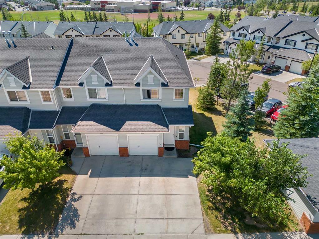 There are many townhouses for sale but not like this one! End unit walkout with double vanity ensuite, 3.5 bathrooms, parking for 3 cars and just a 3-5 walk to Nose creek middle school and the brand new North Trail public high school. Upstairs are 2 good sized bedrooms, a full main bath and a large ensuite with double sink vanity. The main floor living room, dining room and kitchen area have an open concept and being an end unit with extra windows there is lots of bright natural light. The main floor has newer vinyl plank flooring in the foyer, newer hardwood in the other areas, newer toilet and kitchen faucet. The deck is south facing which is perfect for enjoying your morning coffee in the sun or a bbq in the evening. The basement is fully developed with another bathroom (3 piece), large hall/laundry area and a large bedroom with walkout. New dryer in 2023, new furnace humidifier in 2021. Probably the best location in the complex because it does not back onto a busy road, is close to the garbage/recycle shed and backs onto a greenspace. **OPEN HOUSE-Sat.( 2-3:30)**
