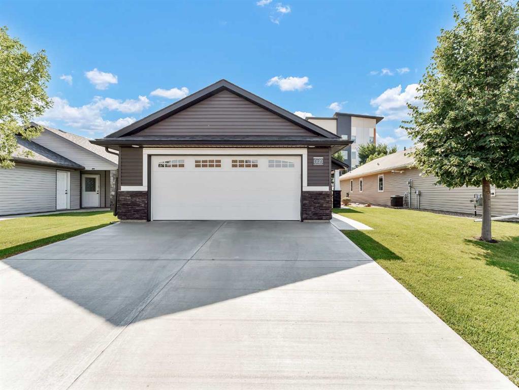 Welcome to your new home in Chartwell Gardens, a premier retirement community designed for comfort and ease. This charming residence, thoughtfully crafted for relaxed living, offers a generous 1,264 square feet of well-appointed space. Step inside to find a beautifully designed floor plan featuring two bedrooms, including a spacious primary suite. The primary bedroom boasts a massive walk-in closet and a luxurious 3-piece ensuite bathroom with a walk-in shower and ample cabinet storage. The second bedroom can easily be used as a guest room or a cozy retreat. A delightful office or den, complete with a pocket door for added privacy, offers a quiet space for work or hobbies. The heart of the home is the stunning kitchen, highlighted by a quartz countertop island and tasteful laminate flooring. You'll appreciate the abundance of cabinet space, including a corner pantry with built-in shelving, ensuring plenty of room for all your culinary needs. The kitchen, living, and dining areas feature a dramatic vaulted ceiling, creating a spacious and airy atmosphere perfect for entertaining. Step outside to enjoy the low-maintenance backyard, where a covered patio and fenced area provide privacy and a secure space for small pets and plants. The property also includes a large double attached garage (22 x 29 feet), which is heated, finished, and features a spacious laundry area and utility room with a tankless hot water heater for efficiency. This pet-friendly community, with certain restrictions, ensures that your furry friends are welcome, and the peaceful environment of Chartwell Gardens adds to the overall appeal of this lovely home. Come experience the comfort and convenience of this exceptional residence—your perfect retreat awaits. Monthly fees are $635.20.