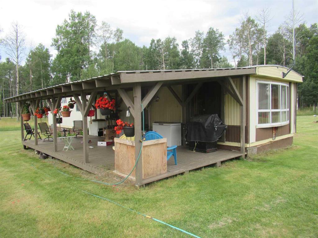 Cow country 22 acre hobby farm parcel, south west of Rocky Mountain House and close to Forest Reserve and crown lands. Approximately eight acres are heavily timbered shelter-belt and the balance is seeded grass pasture. The buildings are hidden from the road by mature timber, and include a small barn next to fenced pastures and handling facilities. Also includes a trainers round pen, tak storage building, two small work shops, pump-house, livestock shelters, and numerous storage buildings. The residence is a "1970s" Atco Sierra 14'x68' 3 bedroom mobile home with a covered deck. A second mobile home is 12'x48' and has been used as spare living quarters, or storage. This building also has an addition and is heated by two wood stoves. Acreage is close to mountain and wilderness trail riding, yet only twenty kilometers from shopping centers and schools. Roads are paved to within 4 kilometers of the parcel