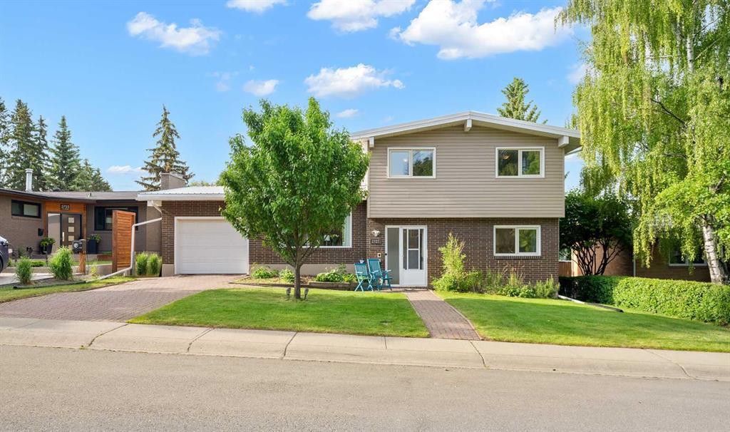 Exceptional opportunity awaits to own a 2500+ sqft home in the sought after community of Charleswood. This rare 2 Storey Split features vaulted ceilings, gleaming hardwood floors, 4 bedrooms, 3 bathrooms, formal dining, a single attached garage, oversized double detached garage and an oversized lot with a South facing backyard. Upon entrance of the home you are welcomed into a large foyer with access to the main living room or lower family room. The large kitchen features ample storage space, a gas range, island, access to the formal dining room with additional storage and access to your patio which leads into the beautiful private south facing backyard. The second level offers 3 bedrooms including the primary bedroom with ensuite bathroom and main 4 piece bathroom. The lower level features access to the backyard, the fourth bedroom (which could be utilized as an office), 2 piece bathroom, a large family room with a wood burning fireplace and built-in storage, as well as a large storage room which could be converted to main floor laundry. The basement offers a spacious developed living space, crawl space storage and the laundry/mechanical room. Parking at this home is never a problem with a driveway, front attached single garage with man door access into the main floor and an oversized detached garage with alley access. The exterior curb appeal is accentuated with timeless brick and neutral tones. This beautiful home is situated on a quiet street steps from parks and green space. The home offers the following upgrades: Metal roof (lifespan up to 70 years), New garage shingles (2021), New Refrigerator (2021), Additional matching custom cabinets in the kitchen & dining room (2021), Fresh paint throughout (2021), Updated light fixtures (2021), New Range hood (2021), Hardwood Installed upstairs (2021). Charleswood is conveniently located South of John Laurie Blvd, Walking/biking distance to Nose Hill Park & Confederation Park, Transit friendly with major bus routes walking distance away as well as access to the Calgary C-Train. The community offers several schools including elementary, middle school, traditional learning and a highschool nearby.