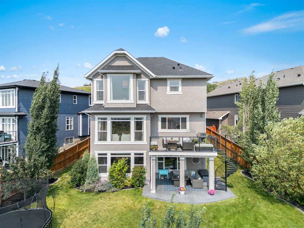 Welcome to this stunning 5-bedroom WALKOUT HOME BACKING ONTO GREENSPACE and located in a Cul De Sac in the highly sought-after community of Cranston’s Riverstone. Upon entry into your new home, you are welcomed by an exquisite 2-storey foyer looking directly through the house as well as up into the bonus room. The dining and living area share a show-stopping two-sided stone fireplace. A wall of large windows in the living area flood the living space with natural light. The seamless flow between the dining room, kitchen, and living room creates an ideal setting for entertaining friends and family. The kitchen is a chef’s dream, featuring top-of-the-line stainless steel appliances and elegant touches including a cabinet-finished canopy hoodfan, glass-detailed cabinets, and built-in wine storage. The main floor also includes a spacious office area, perfect for working from home, as well as a conveniently located powder room. Heading to the second floor, you will find the primary suite—truly a retreat in itself! With expansive windows and vaulted ceilings overlooking a tranquil greenspace, the room is both bright and airy. The master suite includes a luxurious 5-piece ensuite bathroom and a custom 10mm tile and glass shower as well as a giant soaker tub, offering the perfect sanctuary for unwinding after a long day. Additionally, this floor features three more bedrooms, a 5-piece family bathroom, and an exceptional 18-ft vaulted front bonus room with beautiful wood ceiling beams, elegant shiplap walls, and large windows letting in all of the natural light and views of the escarpment. The fully finished walk-out basement is an entertainer's paradise, complete with a stylish bar that includes a keg fridge with taps, a beverage fridge, a dishwasher, and a walk-in wine cellar. This space is perfect for hosting year-round gatherings and enjoying time with family and friends. The basement also includes a guest bedroom and a stunning 4-piece bathroom with a luxurious glass steam shower. Step outside to the tranquil backyard, designed for ultimate enjoyment. It includes a stamped concrete patio covered with cedar soffits, the perfect spot to sit during those hot summer nights! The massive, pie-shaped yard includes a firepit area, gate access to the rear park, and an irrigation system to keep your lawn lush and green throughout the year. The front of the house showcases Trimlights for year-round custom themed lighting and security. Cranston’s Riverstone is a nature-emersed community located just steps from the Bow River. It is surrounded by an environmental reserve, offering peaceful trails and scenic overlooks. Nearby, premier golf courses add a touch of sport and leisure to the area, while the Cranston Resident’s Association stands as a hub of activity and connection, offering residents full access to a range of facilities and events. Together, these features truly make the Cranston's Riverstone an exceptional place to call home!