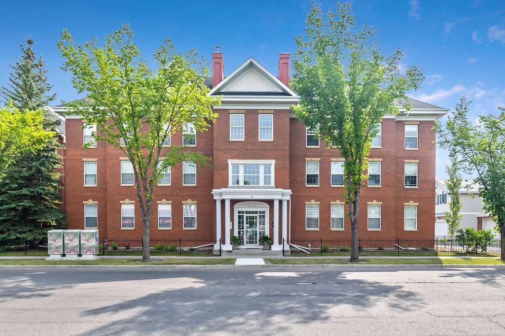 Welcome home! Places like this don't come up often, especially in this elegant complex for ages 40+ that has only 6 units per building making it quiet and private. This top floor unit features vaulted ceilings and tons of natural light with windows on three sides, plus over 1200 sq ft of living space & newer vinyl plank floors. The bright kitchen boasts stone countertops, eating bar and breakfast nook, adjacent to a spacious living room and dining area. The primary bedroom has a large walk-in closet and 3 piece ensuite. There is a second bedroom and full 4 piece bathroom, in-suite laundry, and large balcony backing onto beautifully kept lawn and gardens. There are two entrances, one for your guests and a separate, private entrance offering the option of elevator or stairs out the back, only steps through calm gardens to your own single car garage. Don’t forget about the extra huge storage area below ground, in addition to the storage room off the side of your balcony! There is also rough-in for either or both of a gas fireplace in the living room and gas BBQ hookup on the balcony if you wanted to make it your own. Located in the heart of Inverness in McKenzie Towne, this building has a charming brick frontage, across the street from the square boasting a park and gazebo. You'll be close to the extensive walking paths around the pond, and shopping and dining on High Street. Dreams do come true! Book your showing today!