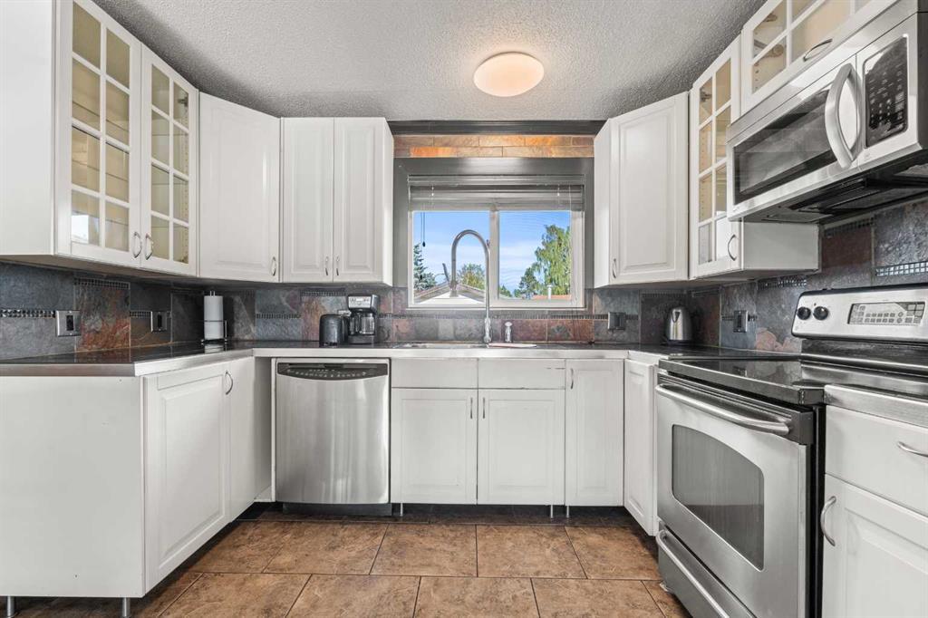 Welcome to 4104 Doverview Drive! A mature treelined street with your new, charming home nestled on an oversized corner lot, a detached double heated garage and private yard to make your own. Enjoy the fully landscaped backyard and harvest your raspberries through the summer, entertain around the firepit, or on the generous sized deck. Inside, you're welcomed with an open concept main level floor plan that allows for wonderful entertaining possibilities. Note the wood burning fireplace, sure to be enjoyed during the colder months! The upper level boasts 2 generous sized bedrooms and a 3 piece bath with a full slate steam shower. Upon entering the basement you are greeted by a built in wooden bar complete with custom stools. A generous sized rec room as well as another bedroom ,laundry room and bathroom featuring a jetted tub. This home is a wonderful opportunity to make it your own with a functional layout and over 1700 square feet of developed living space. The roof was done in 2022, a new hot water tank installed in the last few years and the motor in the furnace was replaced in November of 2023. Most windows were updated in 2009.