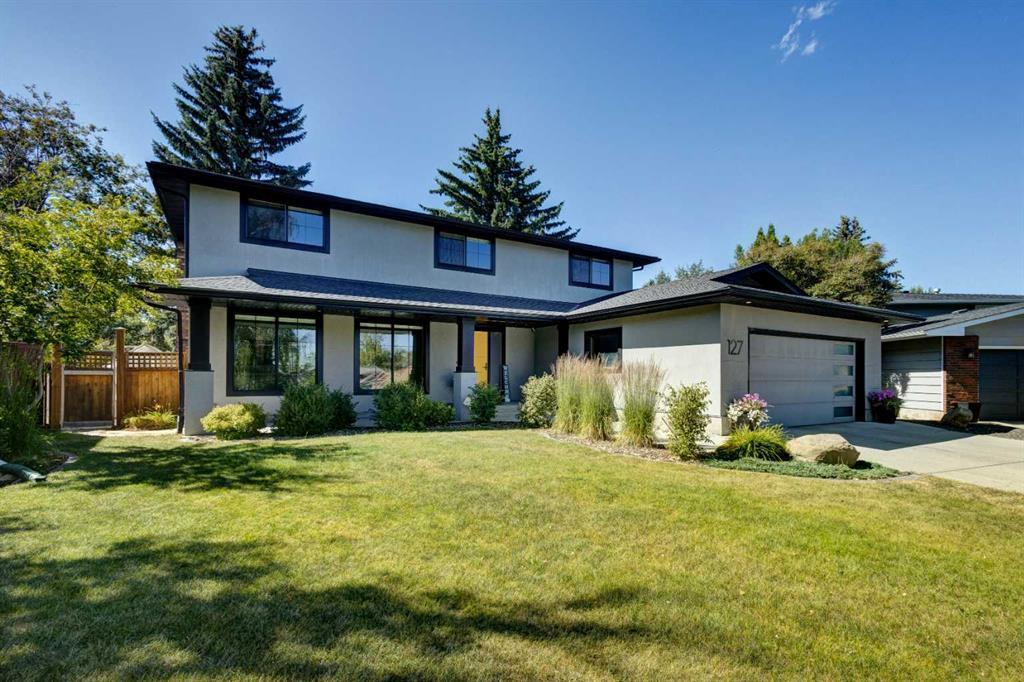 A beautifully designed kitchen offers plentiful cabinetry and excellent lighting. Quartz counters and high-end stainless appliances give the space a sleek modernity that forms a gorgeous contrast with wide plank African Oak hardwood floors and statement backsplashes. The eat-up island is sure to be a natural gathering place when you entertain. A butler’s pantry provides additional storage space and prep area. The open layout flows into the dining area, where a bay window creates a lovely atmosphere for family meals. In the family room, a fireplace in a custom hearth is an eye-catching feature, and sliding glass doors step out to the patio. The mudroom is shared between the back door and the double-attached garage, with custom built-ins and a laundry area w/laundry sink and pull-down tap set-up allows for easy pet care and direct access to side yard making this space wonderfully multi-functional. The butler’s pantry is connected, making putting away groceries easy, and there is also a powder room here. Upstairs, the primary retreat is expansive and serene, complete with a private balcony overlooking the backyard. The ensuite is a spa-like haven, where a double vanity is perfect for couples, heated floors level up the cozy factor, and the beautifully tiled steam shower includes a bench. There are three more bedrooms on this floor, each one with its own personality and statement lighting, and the main bathroom is well-appointed. Downstairs, the finished basement is the ultimate hangout. The rec area has room for your home theatre, gym equipment, games tables, and more. Cork flooring is a great choice on this storey, and there is a fifth bedroom and another chic bathroom here too. With a/c and on-demand hot water, this home has every comfort you could ever wish for. Outside, picturesque landscaping provides scenic areas for all your outdoor activities. Grill and entertain on the patio, or relax around the sunken firepit. Mature trees and low-maintenance garden beds surround pathways, and a large lawn is ready for kids and pets to play.