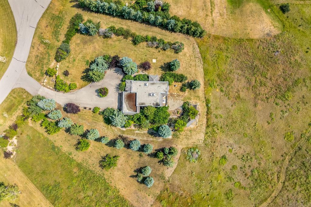Embrace the opportunity for an expansive country lifestyle 30 minutes from the Downtown Core. This sprawling 2.6 acres of land is the true embodiment of scenic solitude, perched atop a no-through roadway offering unrivalled views of the valley below and cityscape beyond. A spacious home full of southwestern style, with stunning earth tones, high ceilings, and arched windows throughout, and an unlimited potential for upgrading to your own taste. The main floor opens up into a bright foyer that connects into a private front bedroom that could also be converted into a home office space. A beautiful kitchen includes a breakfast nook and loads of cabinetry. This level also includes three full bathrooms, two of which are ensuites in the primary. The giant living room comes with built-in shelving features and centers around a cozy gas fireplace, with direct access to the secluded back patio overlooking the entire property. This breathtaking exterior space also connects into the primary retreat which comes with its own giant walk-in-closet. The nearby den is a sight to behold, with two spectacular skylight features cultivating a garden-like oasis. Nearby you are able to conveniently access the attached triple car garage through a dedicated laundry room. Down below are two additional bedrooms, another full bathroom, and a giant recreation room fit for entertaining with its large bar area. The undeniable highlight of this walkout basement is the adjoining sunroom that provides the ability to bask in the middle of nature no matter the season. This home has no shortage of storage or parking, with the added benefits of privacy and year-round peaceful scenery. Don't miss out on this chance to immerse yourself amongst the picturesque foothills and enjoy a slower way of living, with the ability to access city amenities just ten minutes away.