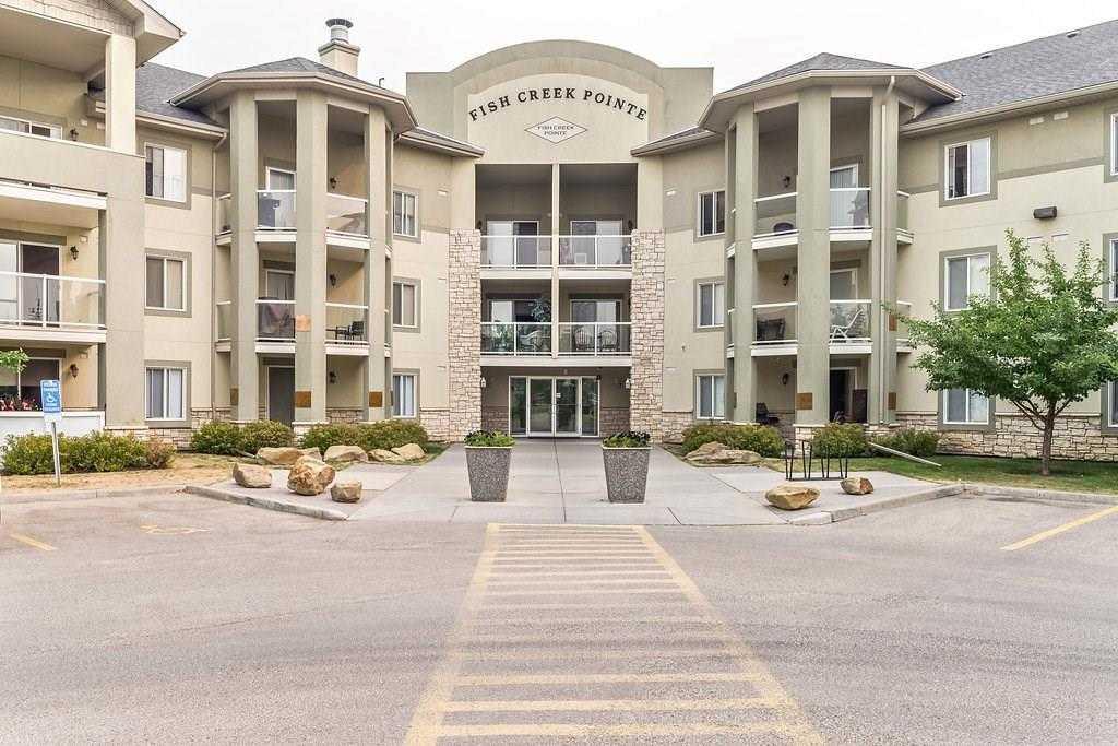 CONDO FEE COVERS ELECTRICITY, WATER/SEWER, AND HEAT; TWO PARKING STALLS. An amazing 2 bedroom / 2 bathroom top floor condo, right at the bank of Fish Creek Provincial Park! All the hiking trails, bike trails, and picnic areas are with easy access! This bright top-floor unit is exceptionally well cared for, with great natural light and an impressive quiet environment. The large sunny balcony has open views to the south courtyard and green field, with a gas outlet for your BBQ. The unit features an open-concept living room with a gas fireplace and a large separate dining area. The kitchen has a generous amount of cabinet space and countertops. The 2 bedrooms are large: the master bedroom has a good-sized closet and an ensuite with a convenient walk-in shower, and the second bedroom has a good-sized closet too. In-suite laundry with a full-sized washer and dryer, and spacious in-suite storage is a plus. New stove and fridge. There are 2 parking spaces for this condo: one titled parking stall in the heated underground parkade, and an assigned parking stall (with plug-in power outlet) on the surface just in front of the building entrance. The assigned surface parking stall bears a $75/month ($900 annually) user fee as per the condo board. Currently, the fee is paid up to June 2025. The owner has the option to renew yearly or surrender the assigned stall to the condo board. This condo also has a spacious storage unit next to your parking stall in the parkade for your winter tires, bikes, and other valuables. Close to schools and all amenities. The bus stops are in front of the building and are only a 5-minute drive to Fish Creek LRT station. Oh, not to forget, quick access to Stoney Trail and mountains, and a few minutes' drive to the new COSTCO store at the TsuuT'ina Nation.