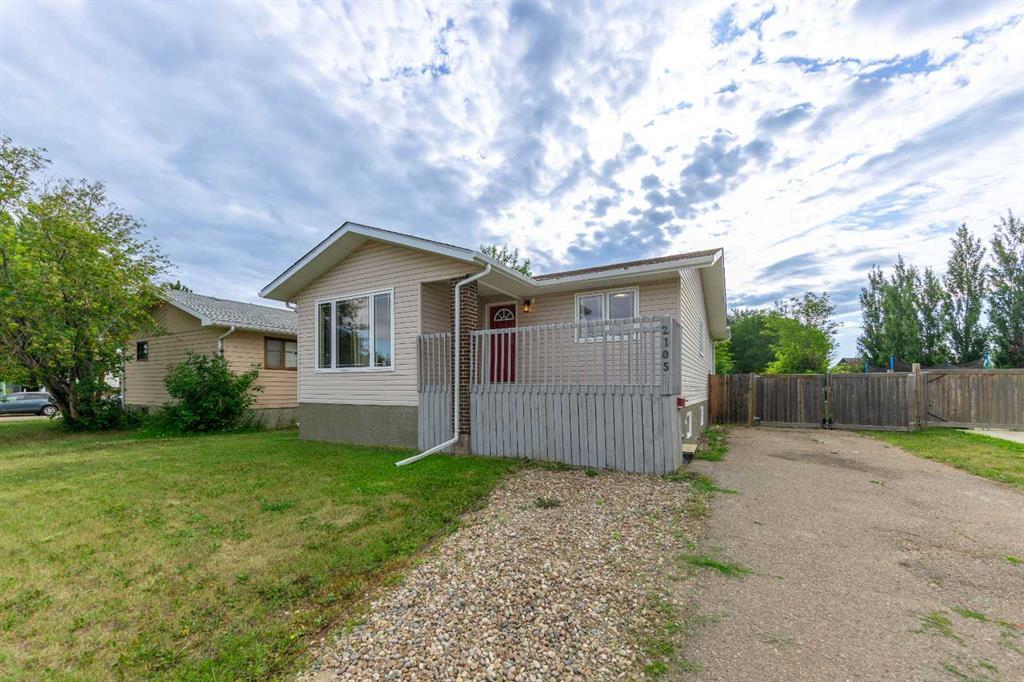 Welcome to 2105 48 Avenue on the sask side of Lloydminster. This bungalow home is perfect for those seeking style and the comfort and convenience of the functional bungalow floorplan. This property has had many updates, it boasts newer shingles, windows, siding, updated furnace and HWT. As you enter the home you are captivated by the flow of the floor plan that is accented by newer flooring. There are large windows that flood the mainfloor of the home. The kitchen is spacious and accents a modern flare with updated counter tops , all appliances included. The upper floor hosts three bedrooms, main floor laundry and an updated full bathroom. The basement contains a large rec room, two spacious bedrooms and another full bathroom. Embrace the privacy of the two tiered deck that is surrounded in trees for added privacy. The backyard is fully fenced and has access for RV parking.