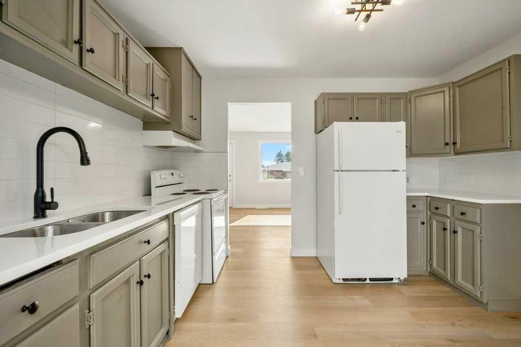 Tastefully renovated bungalow with a 1-bedroom legal basement suite on a quiet mature street. Walk in to be greeted by the bright and sunny living room with original stone wood burning fireplace. You will find the updated kitchen at the back of the home, freshly updated with modern tile, stone counter tops and newer appliances. From the kitchen you have direct access to the large fenced backyard. Being West facing makes it great for gardening or enjoying sunny days outdoors. Upper level also offers 3 bedrooms and full bathroom. The primary bedroom is a very generous 110 sq ft and offers a large closet. Upper level has a lovely flow with new luxury vinyl plank flooring and neutral paint throughout. Lower level features the legal 1-bedroom legal basement suite also recently updated. Large storage area and laundry room also located on this level. Sitting on a large, treed lot with back laneway provides an opportunity to add a garage and/or a shop. Larger updates to this home include a brand-new roof, newer hot water tank and Nest thermostat. Steps from 3 schools, several greenspaces, transit and ample amenities this location is great for anyone looking for city living or an investment opportunity. The legal separate suite allows for multigenerational living, a mortgage helper to help qualify or a great investment for a savvy investor. Contact your Agent to book a viewing today!