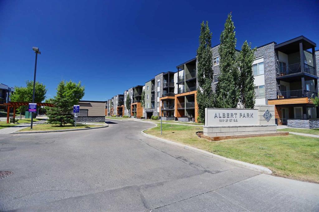 Available for quick possession in the popular family community of Albert Park/Radisson Heights is this lovely condo in the ALBERT PARK STATION project. This terrific main floor unit has granite counters, 2 bedrooms + den, titled underground parking & covered patio terrace. Super open concept floorplan featuring great-sized living room with large windows, spacious dining area & sleek kitchen with granite counters & GE stainless steel appliances. Both bedrooms offer excellent closet space & are located on opposite sides of the condo for that extra sense of privacy. The master bedroom has a walkthru closet into the full ensuite with granite counters. The 2nd full bath - also with granite counters, has an adjoining laundry with stacking washer & dryer. Next to the foyer, the office is an excellent mult-purpose space which you could use for storage, media room or home gym. Just steps from your unit is a stairwell taking you down into the underground parkade & to your parking stall. Loads of visitor parking for your guests. Monthly condo fees include heat & water-sewer. Superb location only a few short minutes to Max Bell Arena, International Avenue & LRT, easy access to schools & area parks, & quick commute to the downtown core.