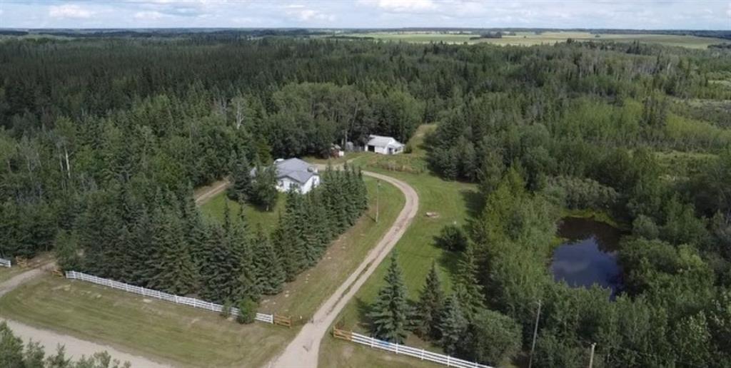 Discover your sanctuary in this beautifully updated and meticulously maintained nature lover's retreat. Nestled on a serene 10-acre parcel, this property offers unparalleled privacy and tranquility, surrounded by lush trees that act as a natural windbreak, ensuring peace and quiet. The highlight of this property is a spacious 1,438 sq ft, 4-bedroom modular home, thoughtfully designed and featuring a basement for added space. Enjoy outdoor living with a large deck off the kitchen and dining area, perfect for entertaining or simply savoring the peaceful surroundings. The heart of the home boasts honey oak cupboards and ample counter space, ideal for culinary enthusiasts. New carpet was installed in the upstairs bedrooms in 2022, complementing the freshly painted main floor. The home has been updated with windows and a furnace in 2000, and a durable tin roof with two skylights in the kitchen was added in 2015. Water and utilities are well taken care of with a reliable 3,600-gallon cistern and a large dugout ensuring a steady water supply. The property is equipped with 100 amp power and natural gas. Additional structures include a 22 x 25 ft older building, previously used as a detached garage, offering versatile space for storage or projects. There is also a 17 x 14 ft building that can serve as a chicken coop or a heated hangout den or can be converted back to a cozy cabin that provides a perfect spot to enjoy the great outdoors while staying protected from the elements complete with a wood stove. A handy 12 x 12 ft shed provides additional storage. This idyllic property combines modern comforts with the charm of rural living, making it a perfect escape for those seeking a peaceful, nature-filled lifestyle. Don't miss the opportunity to make this your dream home. Reach out to take the time to see this gem of a property for yourself!