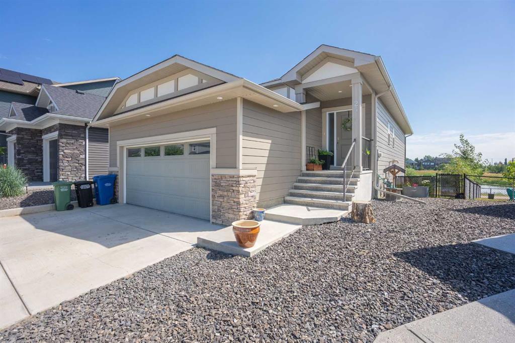 Make this home your own! This stunning 3 bedroom walk-out bungalow offers the perfect blend of comfort, style, and tranquility. As soon as you enter this bright and spacious main floor, you'll immediately notice the open space with an abundance of natural light pouring through the patio doors, leading to a large deck that overlooks a serene pond and walking path. Imagine having your morning coffee and watching the sun rise and winding your nights down with the sunset. The open-concept layout seamlessly connects the living, dining, and kitchen areas, creating an inviting space perfect for both relaxation and entertaining. Stainless steel appliances, corner pantry, large kitchen island, everything the culinary expert in your home could ask for! The master suite, conveniently located on the main floor, is a true retreat. It features its own patio doors to the deck, with the gentle view of the pond. The spa-like ensuite, accessible through a charming barn door, boasts double sinks, a luxurious tub, and a beautifully tiled shower, ensuring a private oasis for unwinding. Not to mention ample closet space ! Downstairs, the large family room has so much to offer with open area for game nights, movie nights or simply quiet times for you on those days you need it. There are two additional bedrooms, each with huge walk-in closets, providing substantial storage and comfort. This level offers an abundance of enjoyment for family or guests, ensuring everyone has their own haven. Enjoy the walk out to the backyard straight to the paths - it's that easy! Storage will never be an issue in this home, with plenty of room to keep your belongings organized and out of sight. The heated garage is perfect for those chilly Alberta winters, providing both convenience and comfort. Backing onto a pond and surrounded by walking paths, this home is ideal for anyone. Easy access in and out of Okotoks for those who commute, more amenities are being built making Drake Landing more desirable by the day! Don’t miss the opportunity to make this exceptional bungalow your forever home. Experience the perfect balance of luxury and tranquility in this beautiful property. Book a showing with your favourite Realtor !!