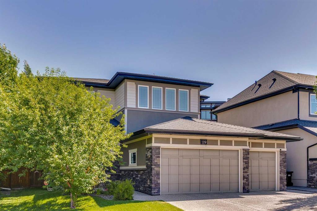 Breathtaking 3+2 bedroom home BACKING ONTO WALKING/BIKING TRAILS in Aspen Woods, offering over 4100 sq ft of luxurious living space. The bright main level presents hand-scraped hardwood floors, high ceilings & is illuminated by recessed lights & elegant light fixtures, showcasing the living room anchored by a feature fireplace & built-ins that’s open to the spacious dining area & kitchen that’s tastefully finished with quartz counter tops, island/eating bar, custom cabinets, butler’s pantry & stainless steel appliances. There are 2 offices, one tucked away just off the foyer & a smaller computer room/office just off the kitchen. Completing the main level is a convenient mudroom & 2 piece powder room. Ascend to the second level that hosts a bonus room, 3 bedrooms, a 4 piece bath & laundry room with sink & storage. The lavish primary suite with tray ceiling boasts a to-die-for walk-in closet & spa-like 5 piece ensuite with dual sinks, relaxing soaker tub & separate shower. Basement development includes a large recreation/media room with custom media cabinetry, prewired sound & LED lights, 2 additional bedrooms & 3 piece bath with steam shower. Other notable features include central air conditioning & built-in speakers. Also enjoy the convenience of a triple attached front garage & back yard with deck, pergola & direct access to walking/biking trail. This home is located close to schools, shopping, public transit & has easy access to 17th Avenue.