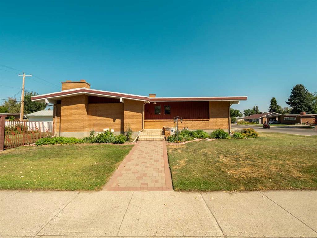 Welcome Home to this beautifully crafted mid century designed bungalow in one of Lethbridge's popular neighbourhoods of Agnes Davidson, close to schools, parks, shopping, and other amenities. This home features timeless finishings of yellow brick exterior and hardwood floors on the interior. Some updates have been done over the years to make the home more modern. A super single garage was added about 8 years ago off the back alley that is insulated and has OSB plywood interior so you can hang anything anywhere! Home also has a carport that faces 16th Avenue S. with room for 1 car in the carport and 2 more on the driveway. Inside, you'll find a welcoming entry and a sprawling bungalow that has throwback design elements. Front living room is large and has windows across the back that let in so much natural light. A decorative fireplace is surrounded by stone from floor to ceiling. The hallway leads to a formal dining room and kitchen that have been upgraded with newer flooring. Kitchen has plenty of cupboards and all your standard appliances. Beyond the kitchen kitchen is a comfortable family room with wood walls and ceiling. Lots of windows let in plenty of light, and there is a door to the backyard patio and carport area. Main floor also features main hallway with 3 bedrooms, including primary with 2 piece ensuite bathroom. There is also another bathroom on the main with jet tub. Basement is fully developed with a summer kitchen, storage room, 4th bedroom(currently being used as a craft room), large rec room with wood burning fireplace, 3 piece bathroom with walk-in shower, & laundry/utility room. Home is heated with baseboard heat from the boiler and there are some hot water lines that are under the kitchen and dining room for added comfort. Backyard has a patio, garden, and good size yard. Entrance to garage(backing alley) and carport also accessed from backyard. Corner lot on 110x60 lot.